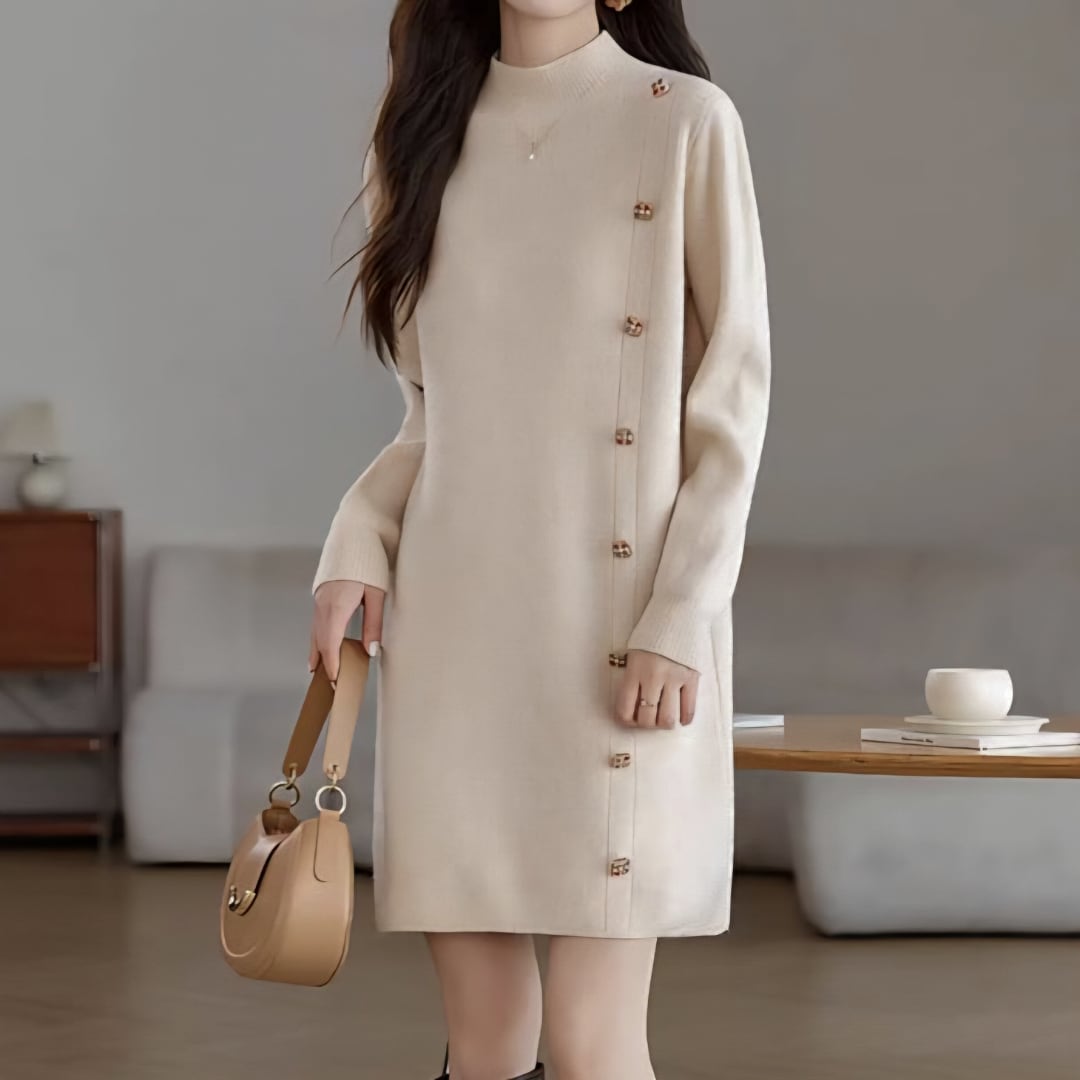 Button-trim high neck sweater L0800