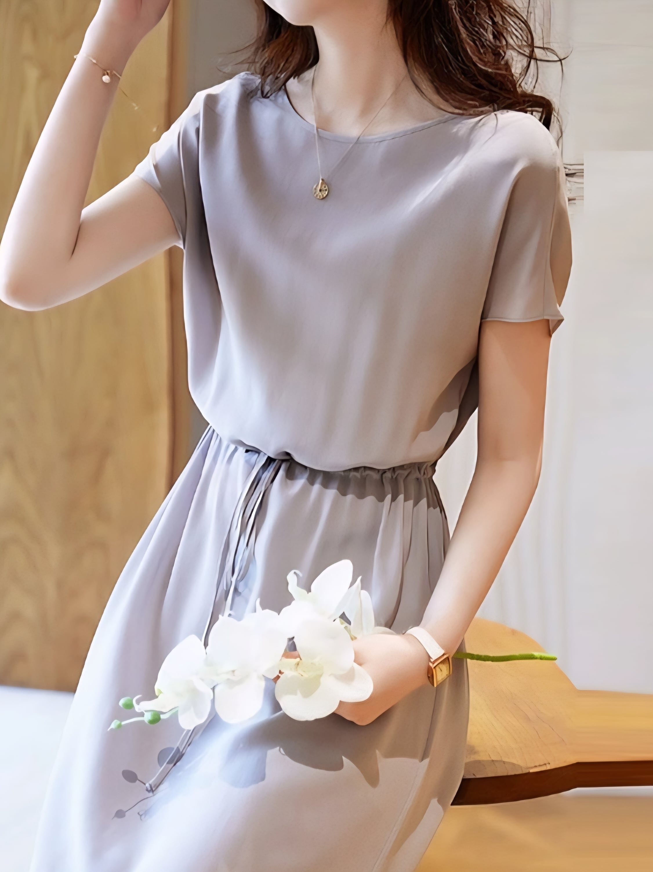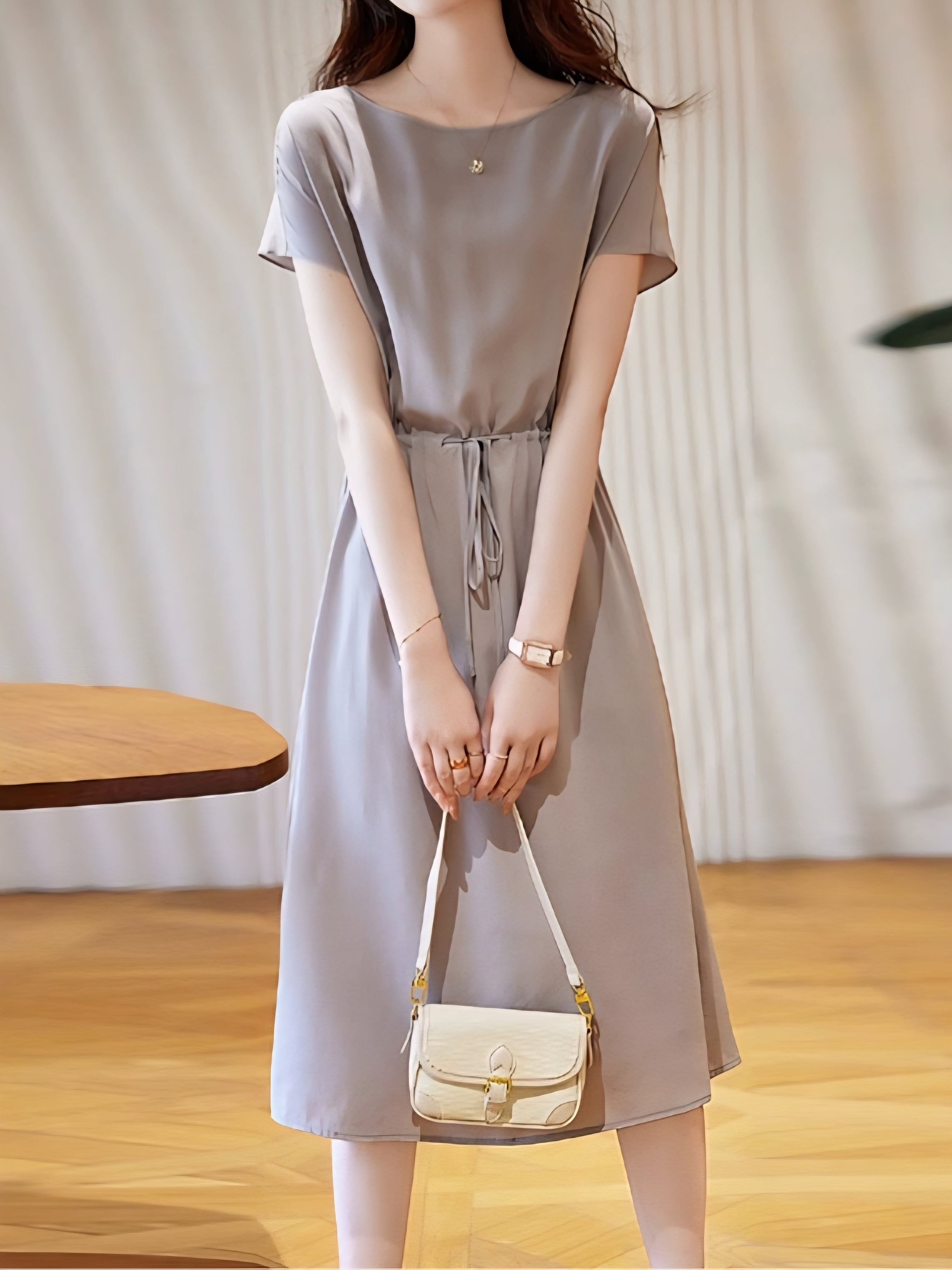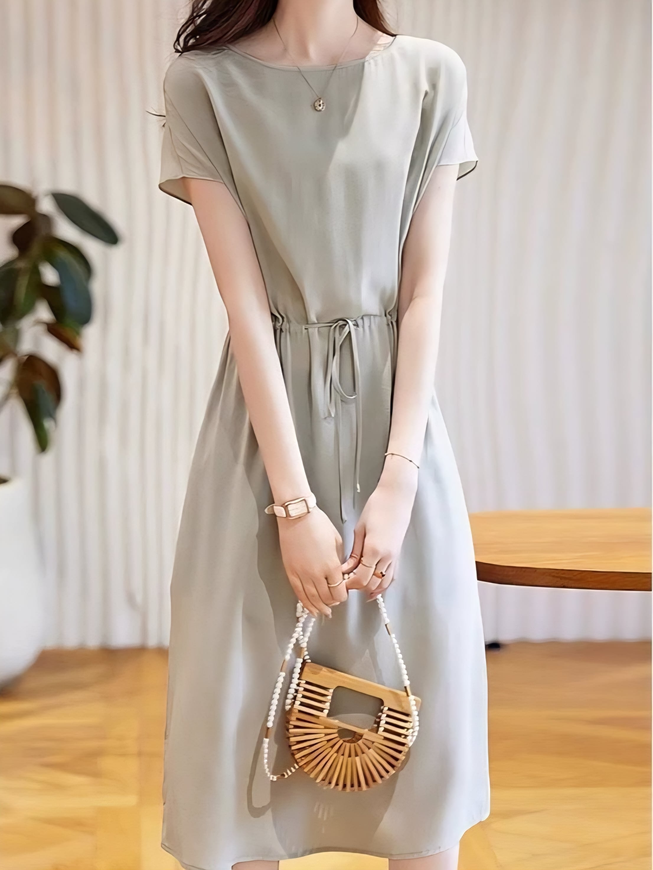 Waist switching ribbon onepiece L0725
