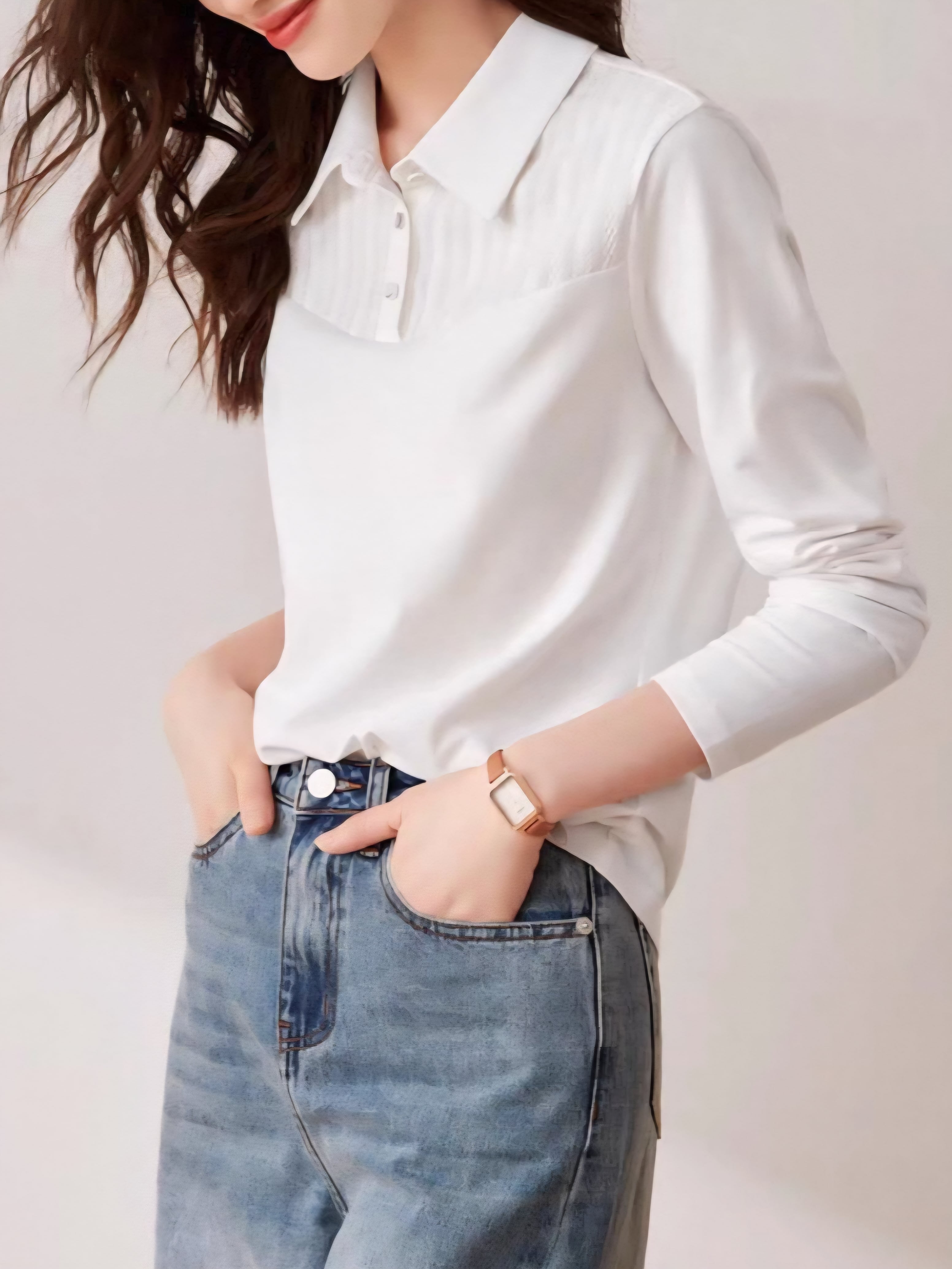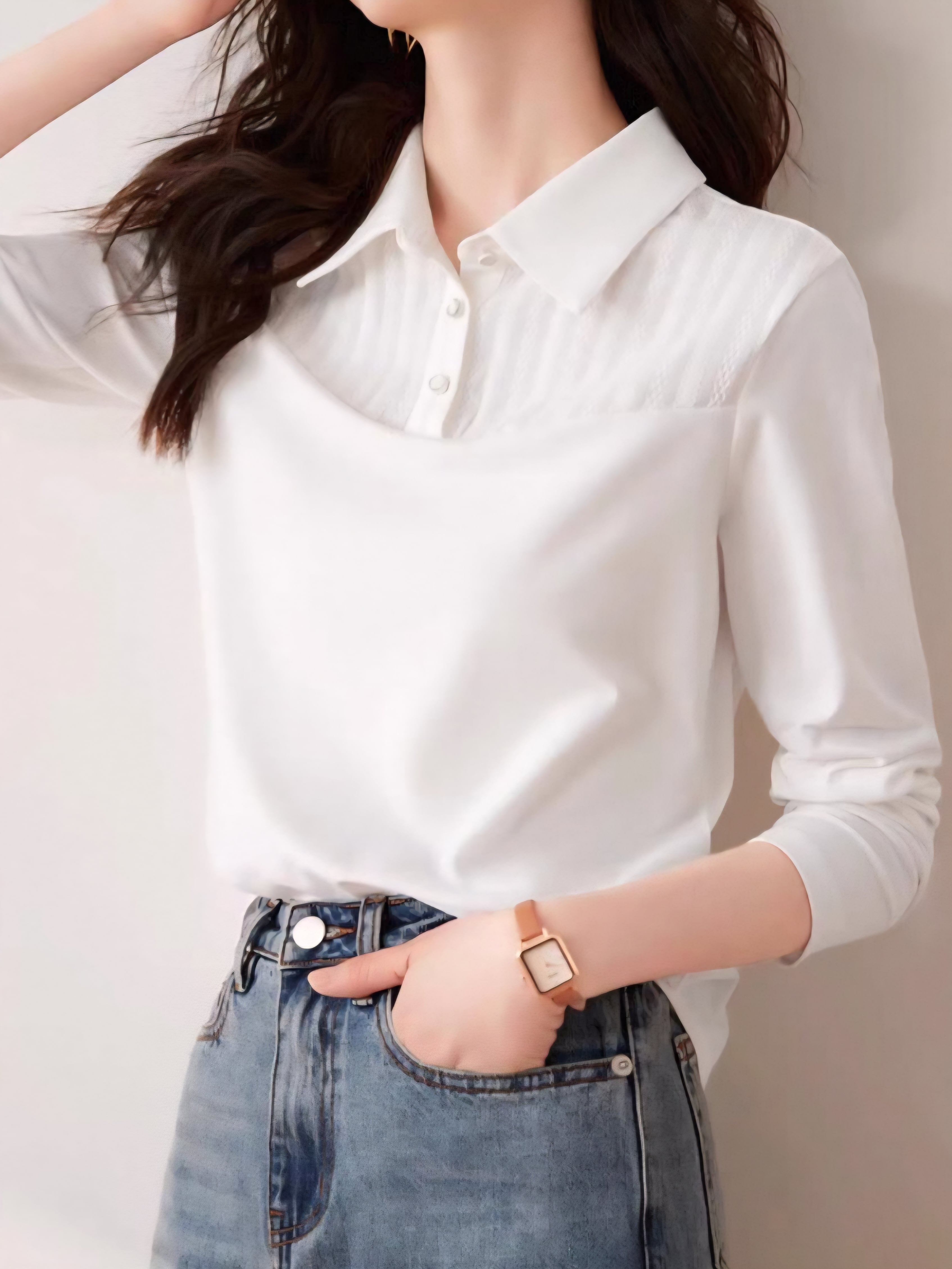 Simple collared pullover L0736