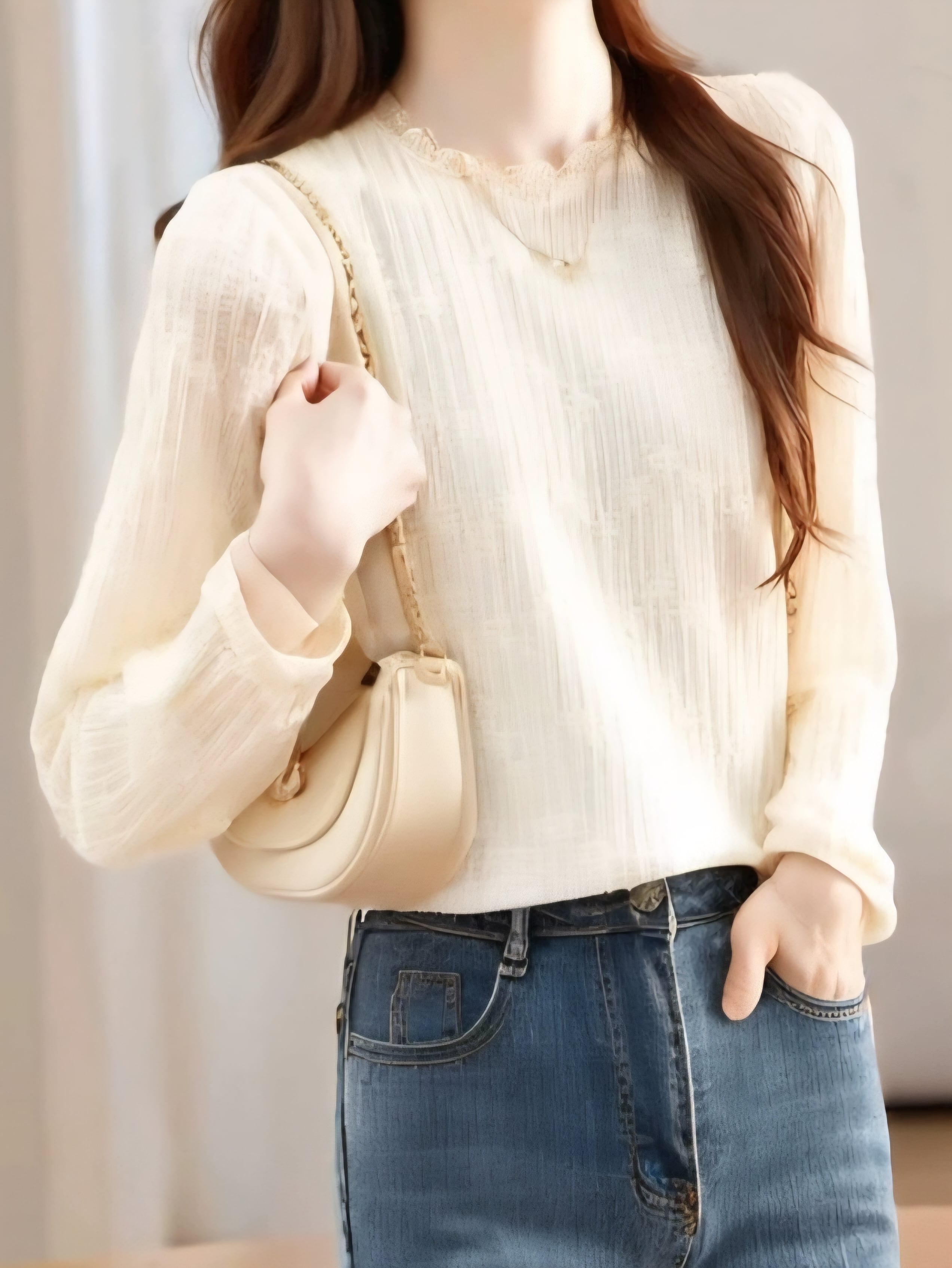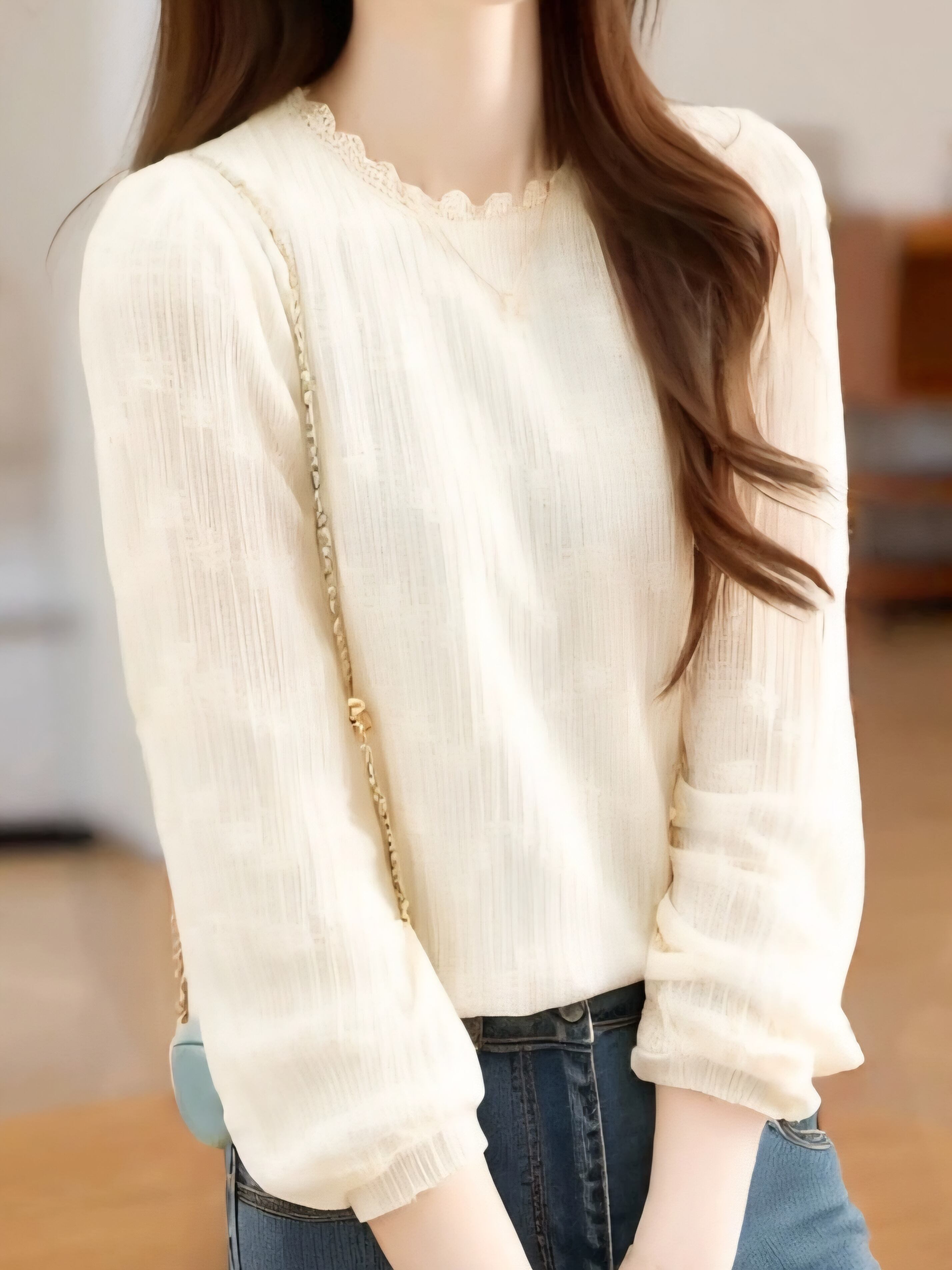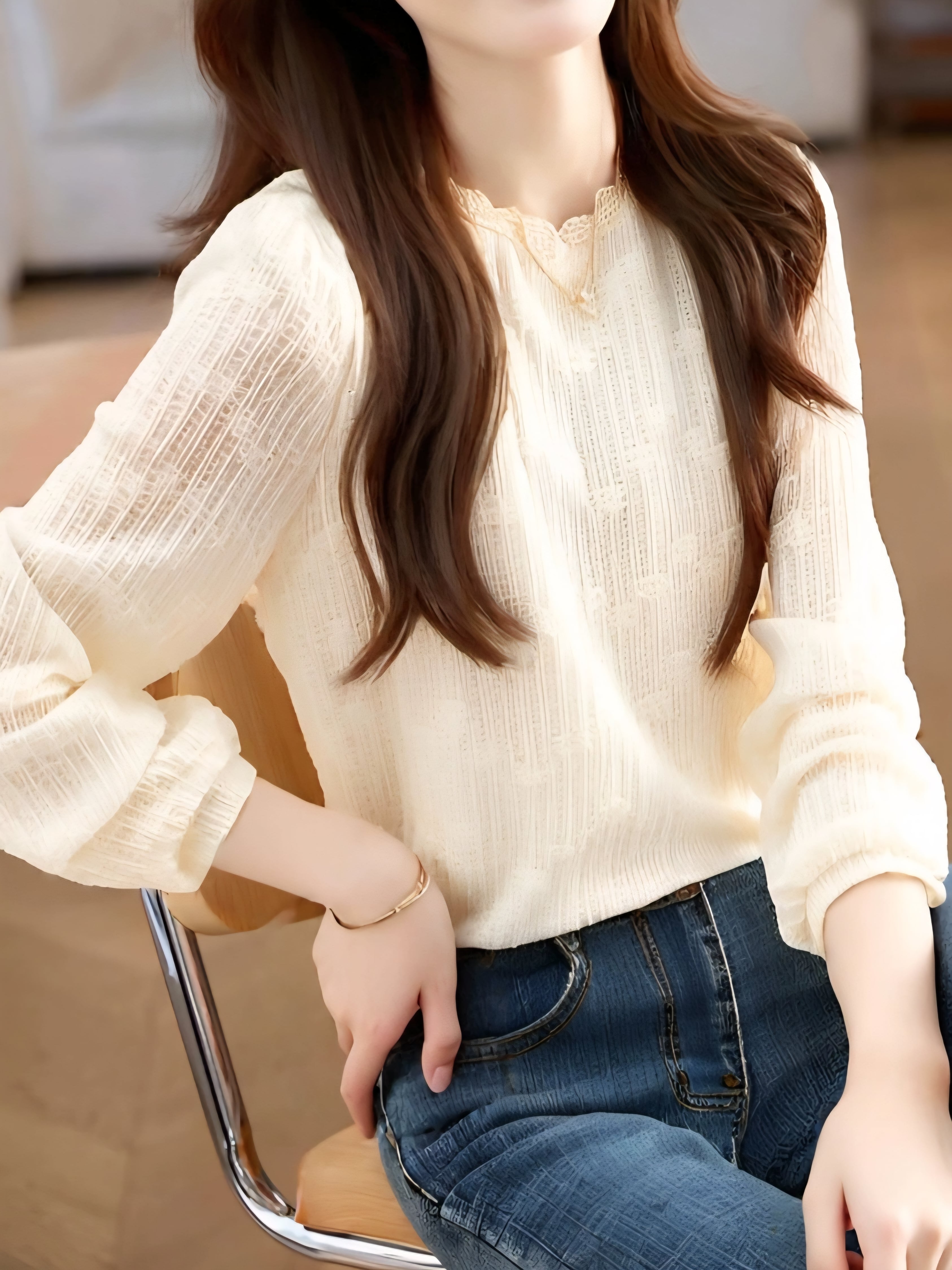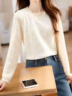Lace texture long sleeve chiffon blouse L0741