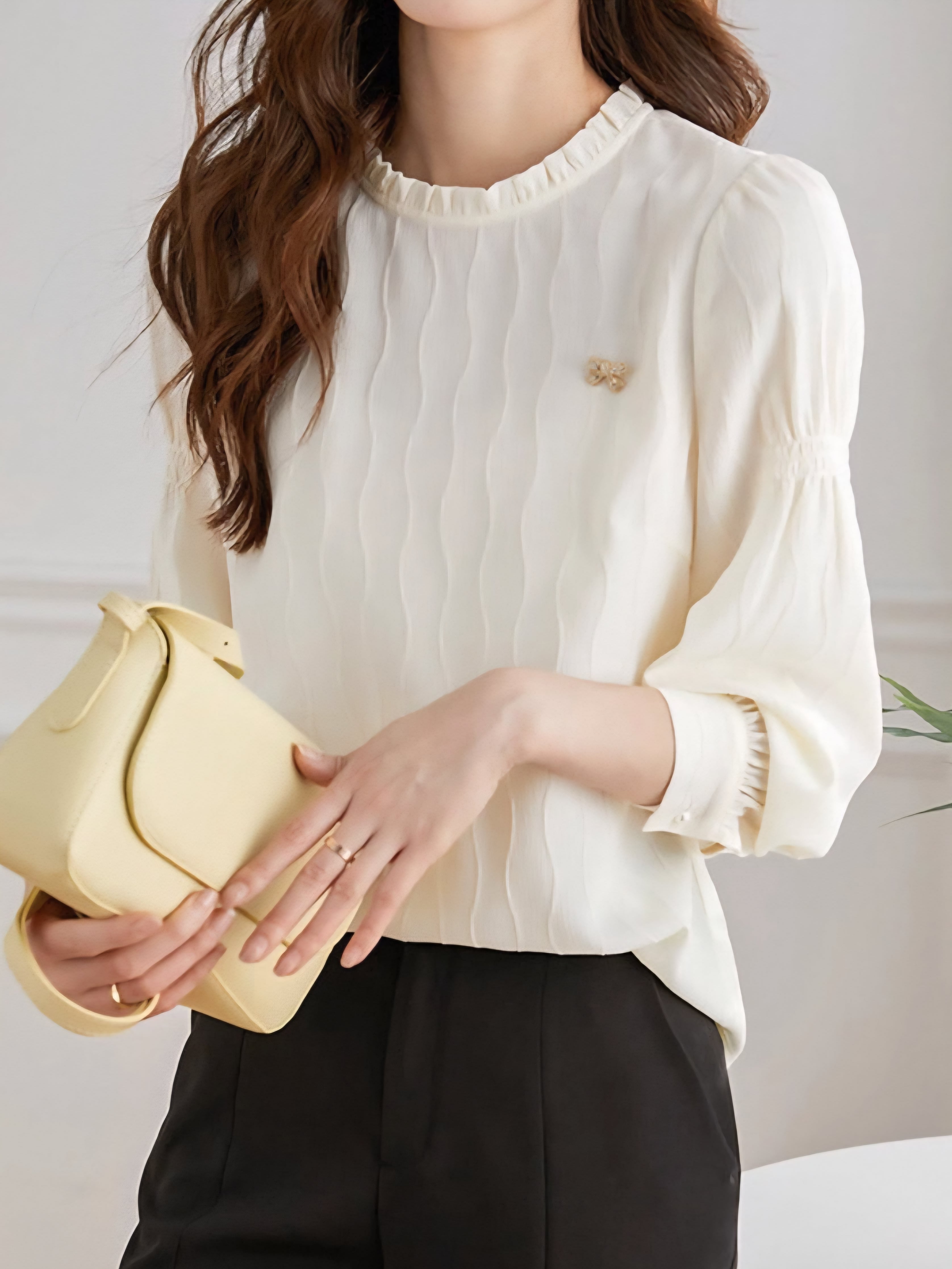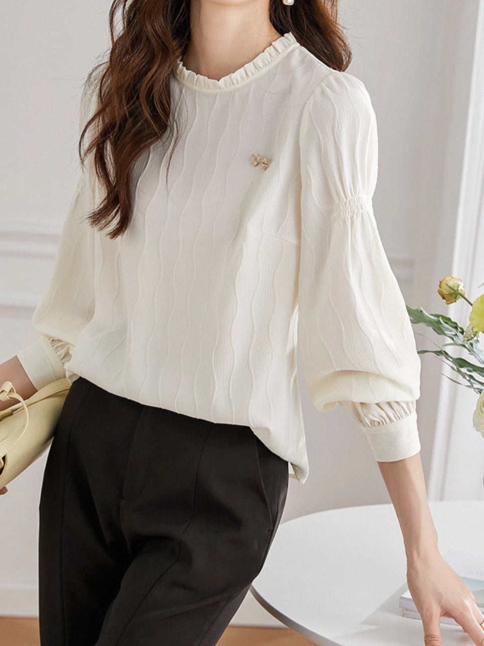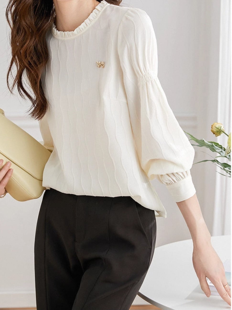 Frill collar wave design blouse L0745