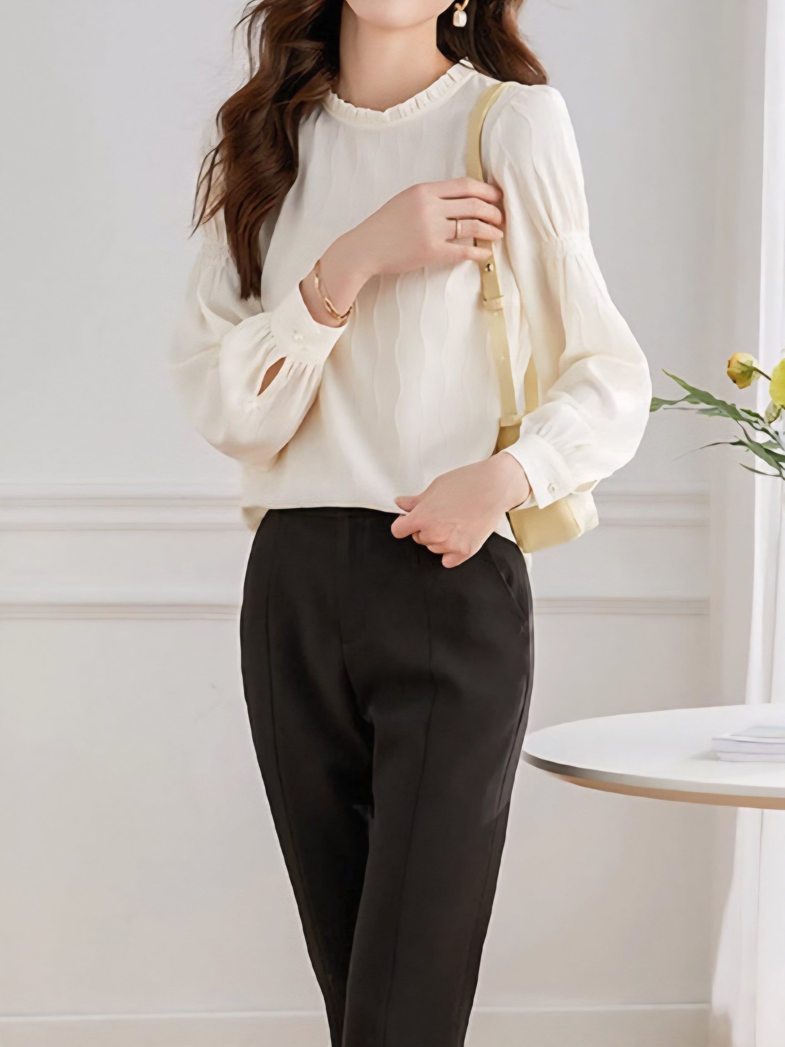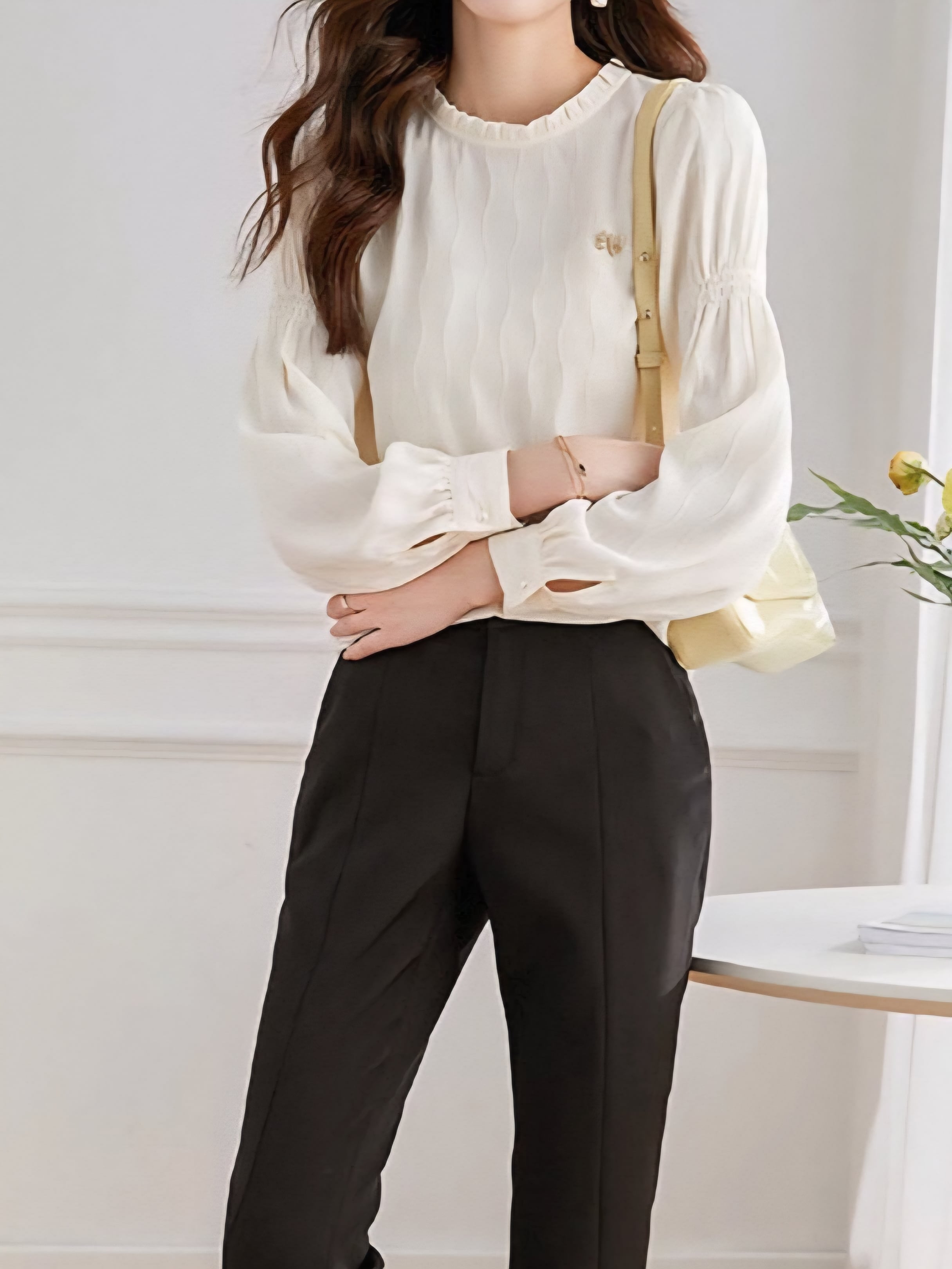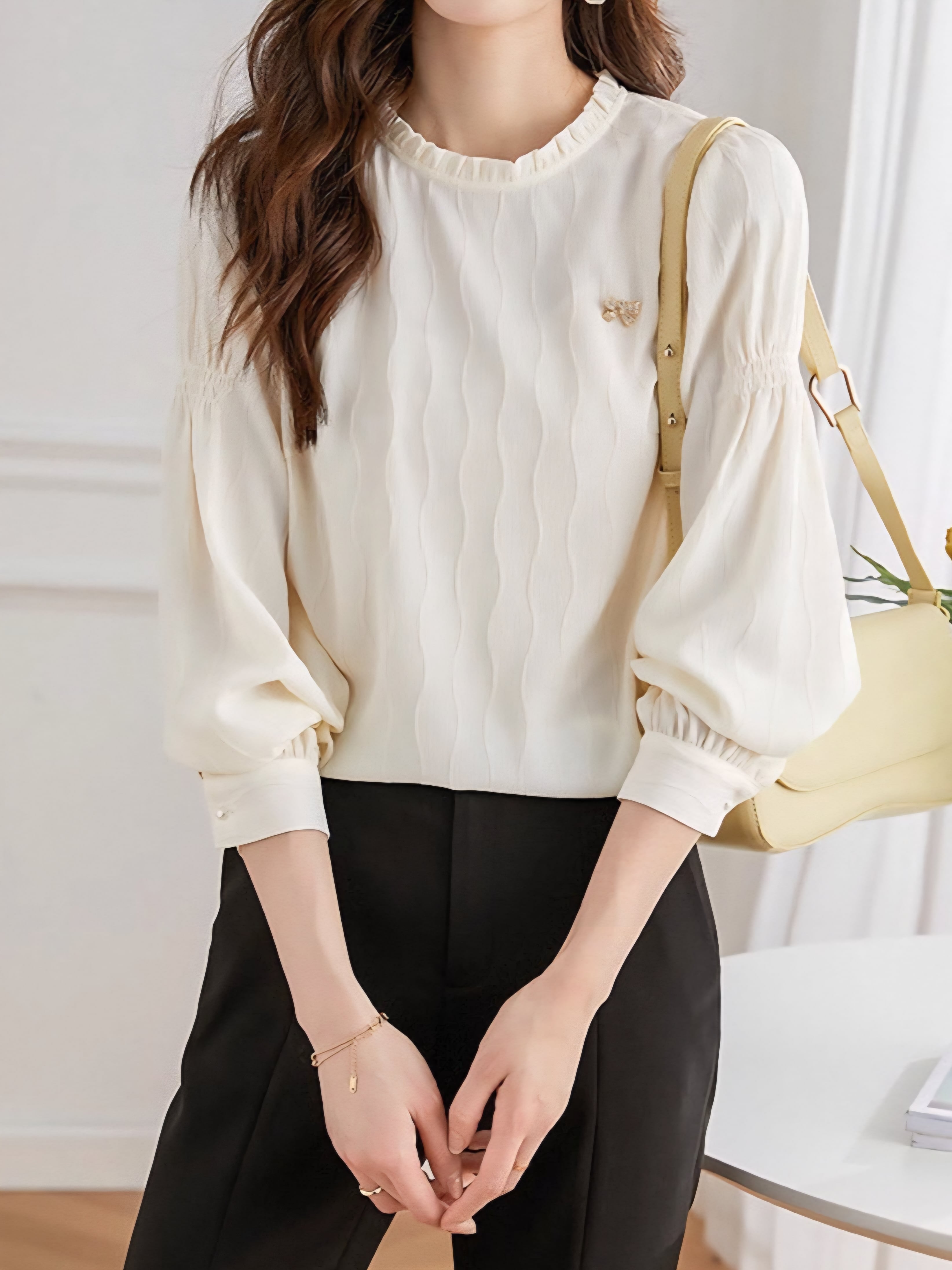 Frill collar wave design blouse L0745