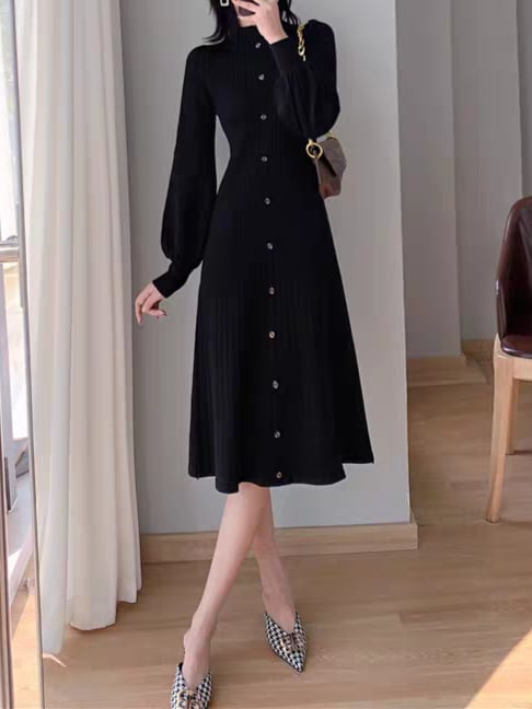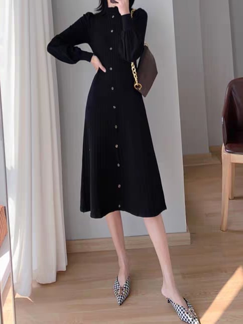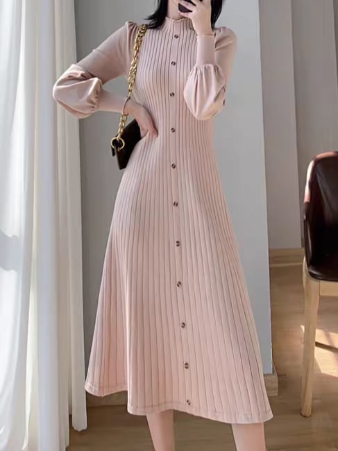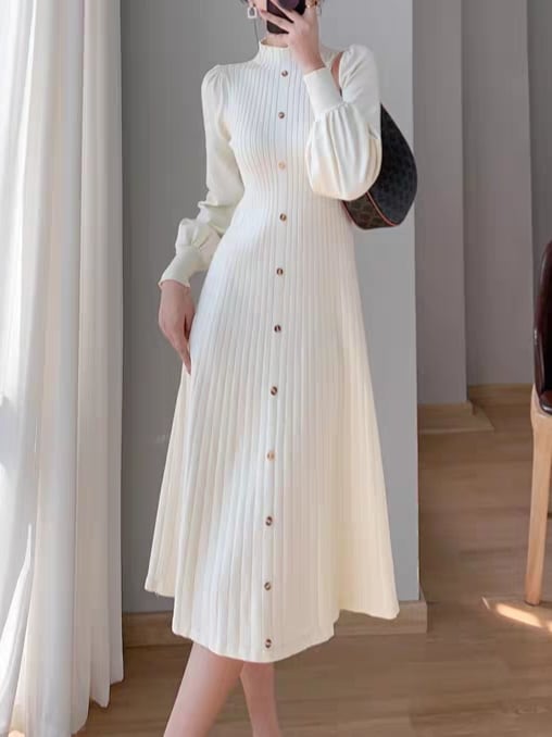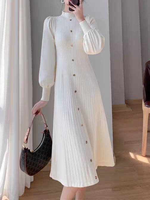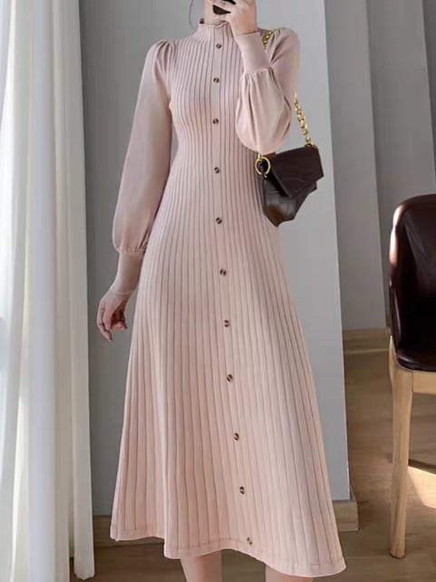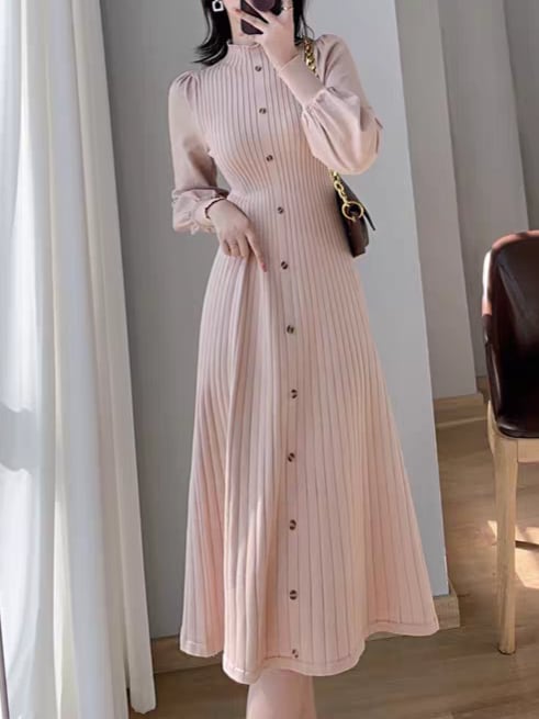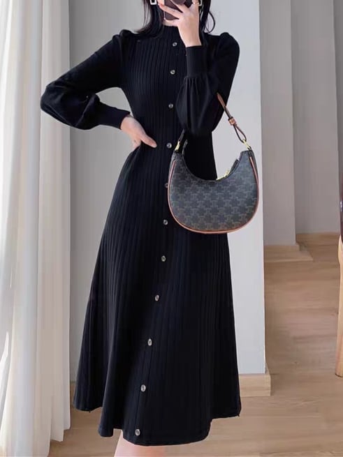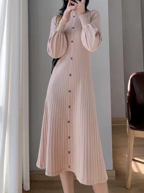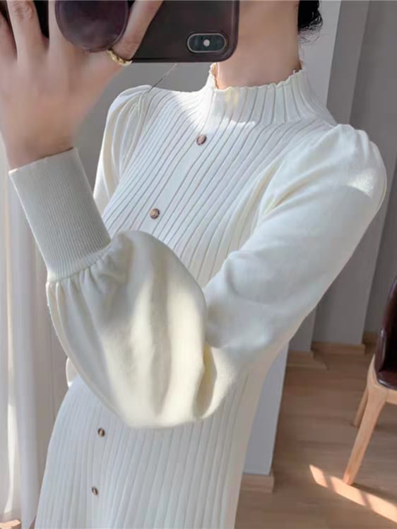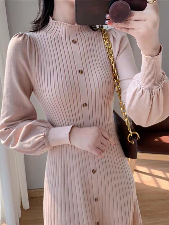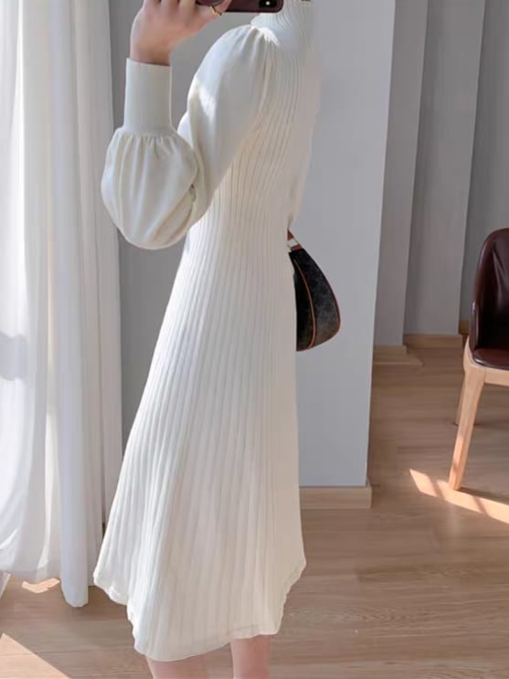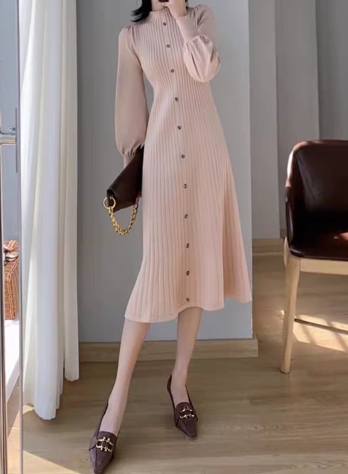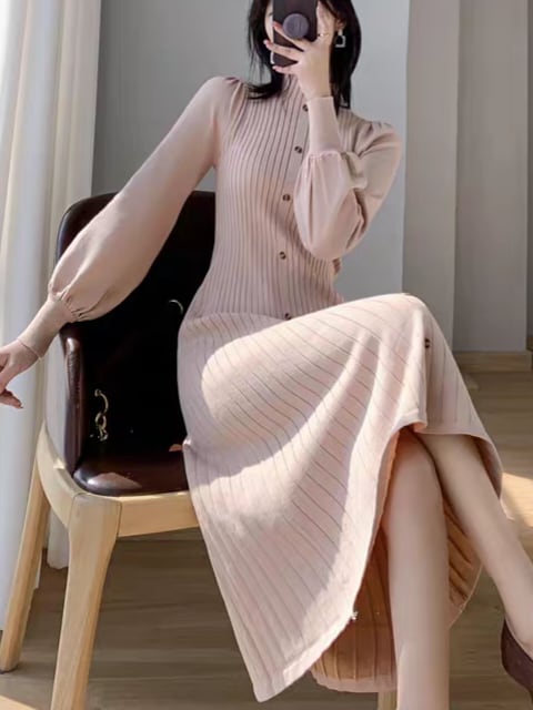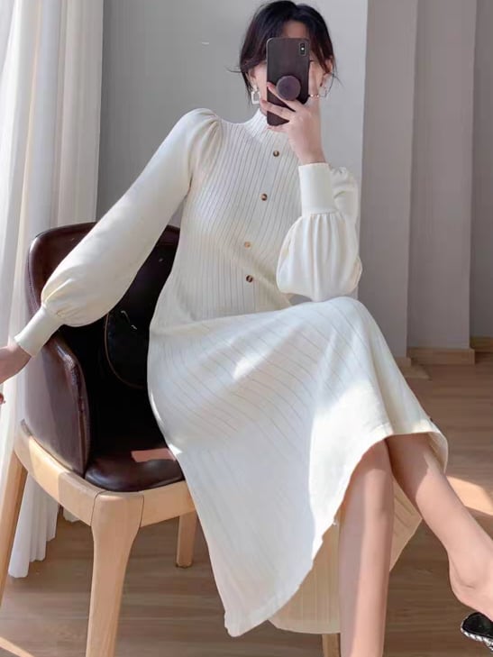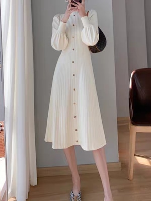 Long puff sleeve knit onepiece L0761
