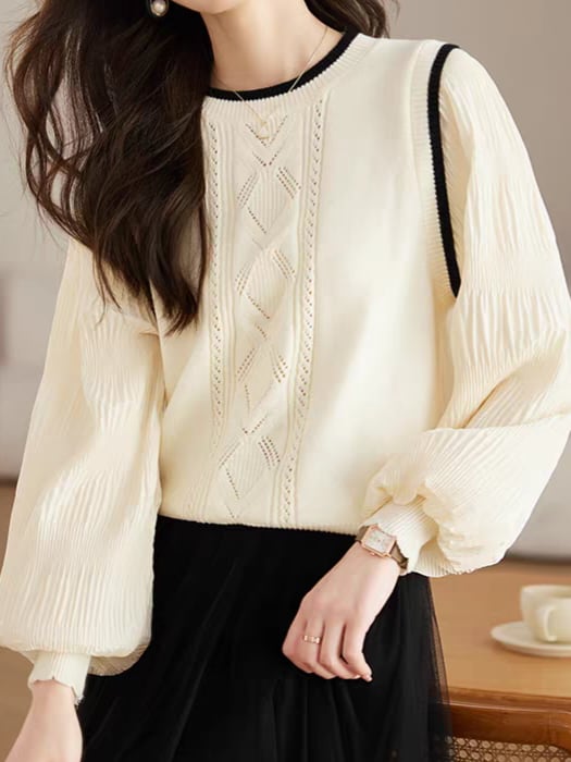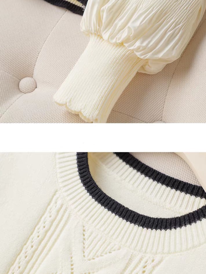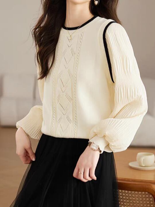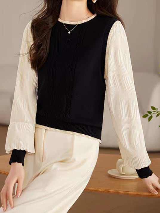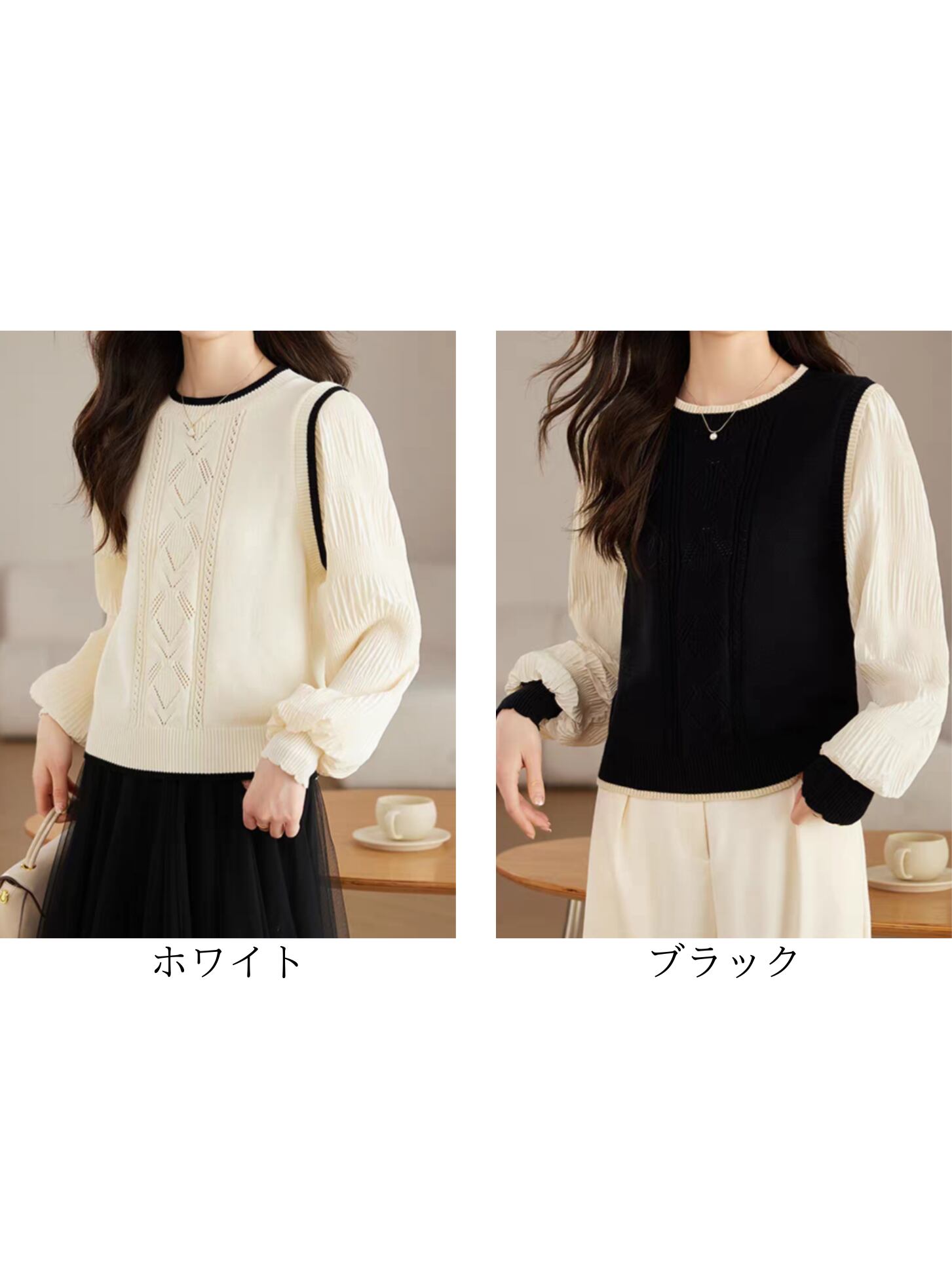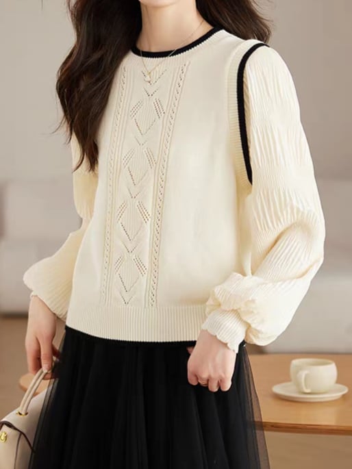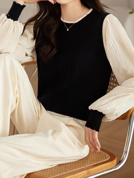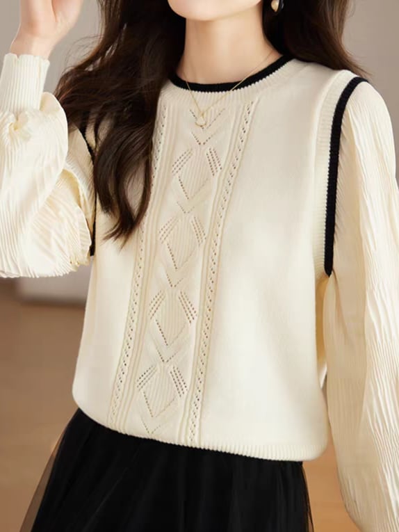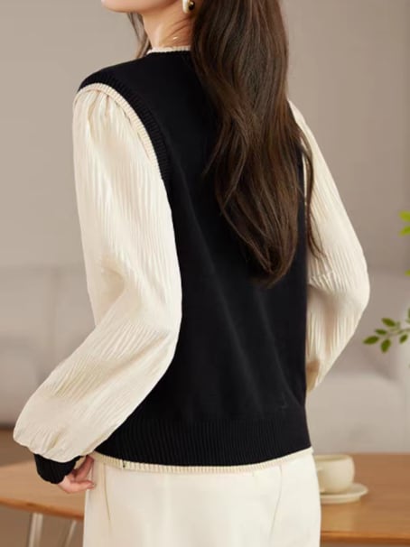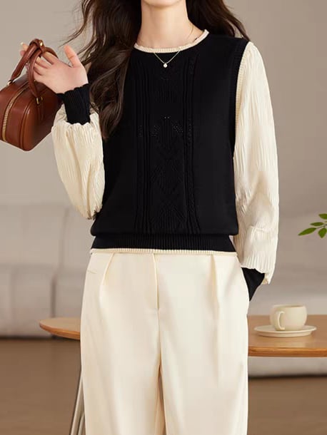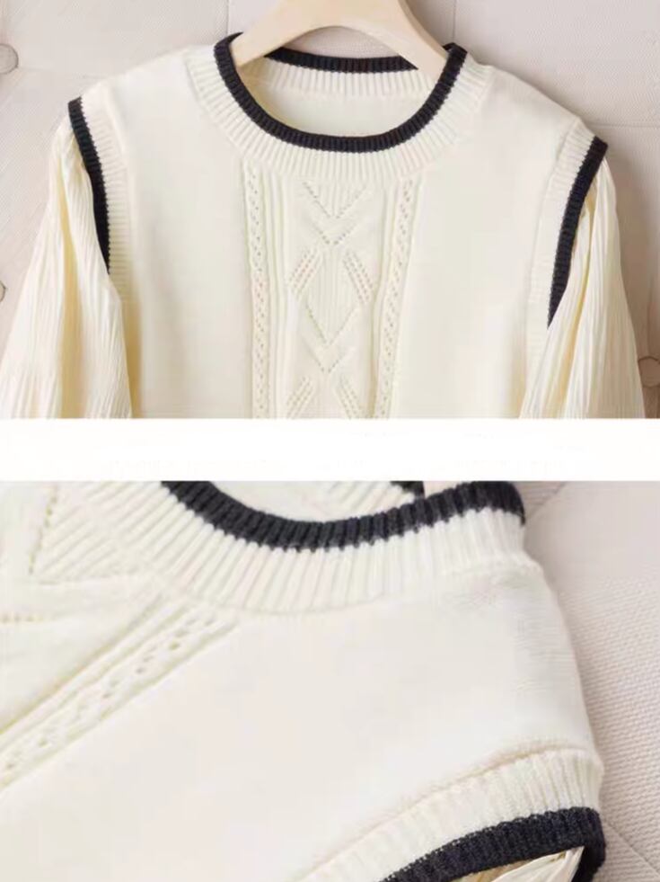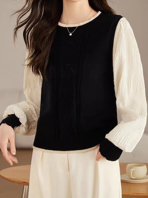 Knit vest style fake layered top L0755