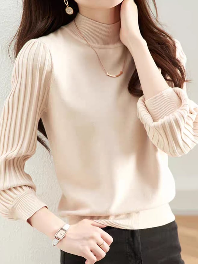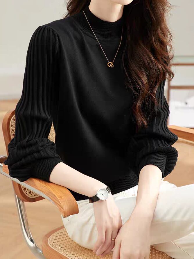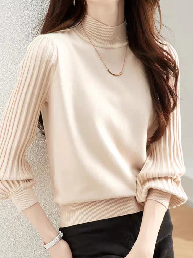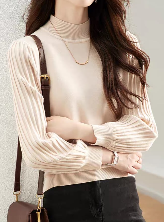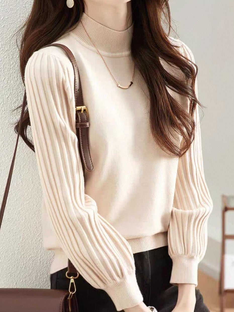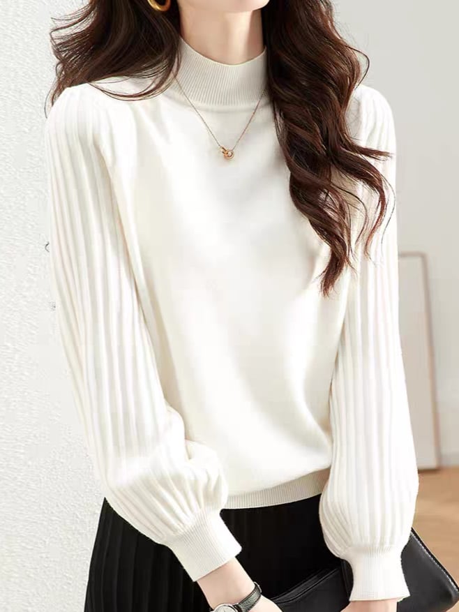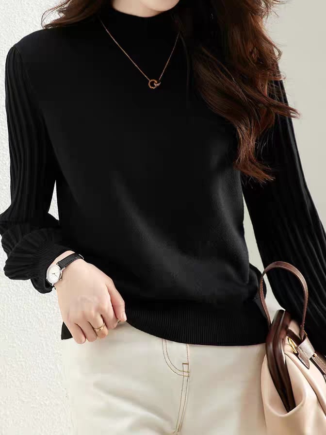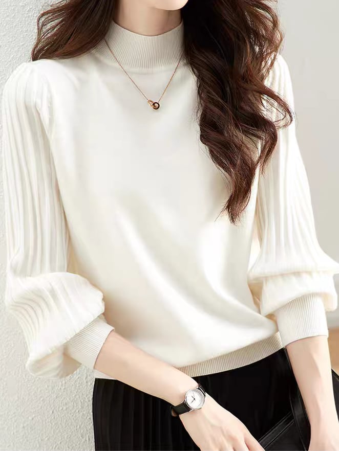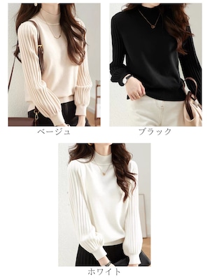 袖プリーツの立体感が「細く見える」ラインを作り、一枚で“ちゃんと見え”が叶う優秀ニット。