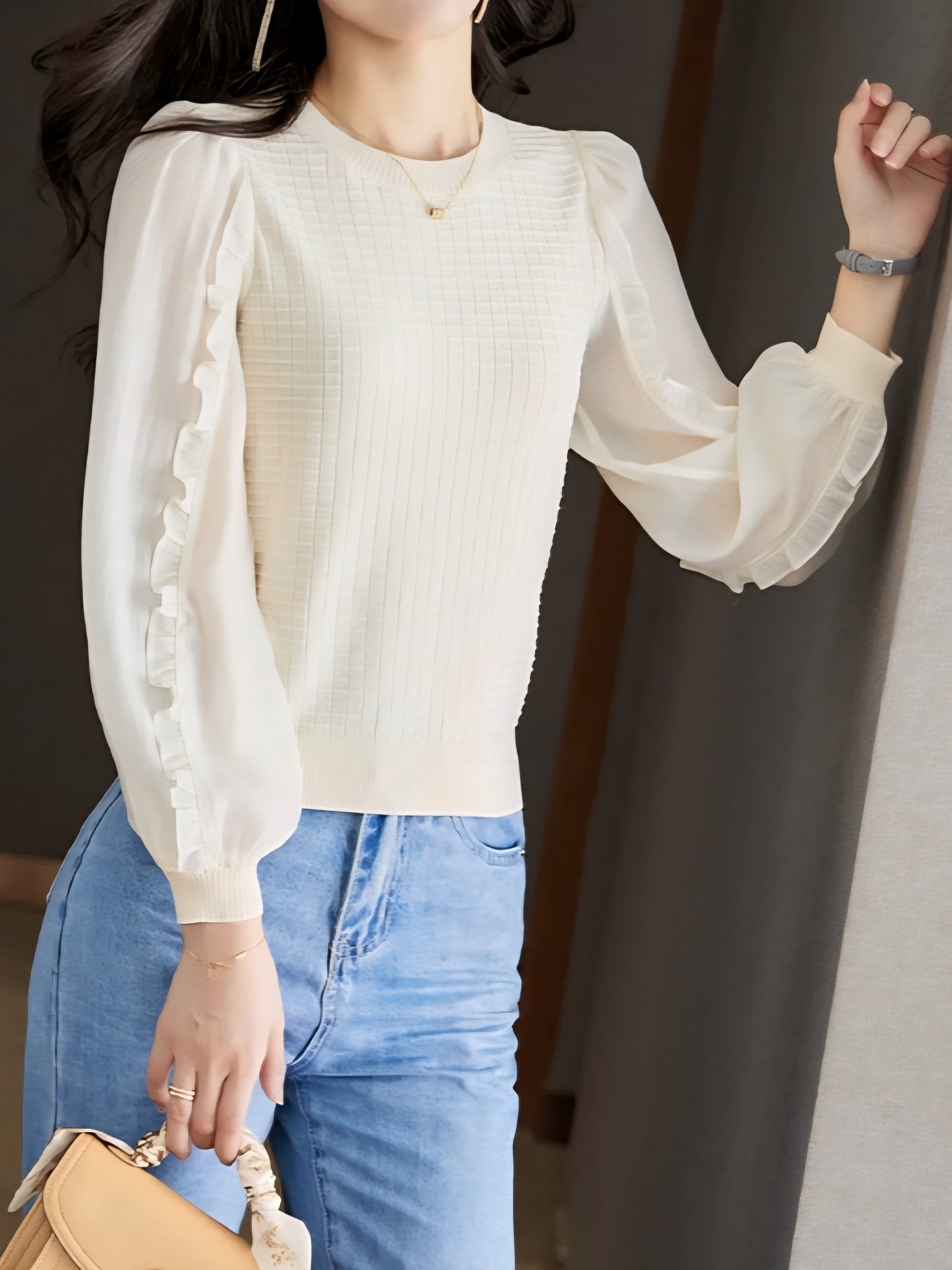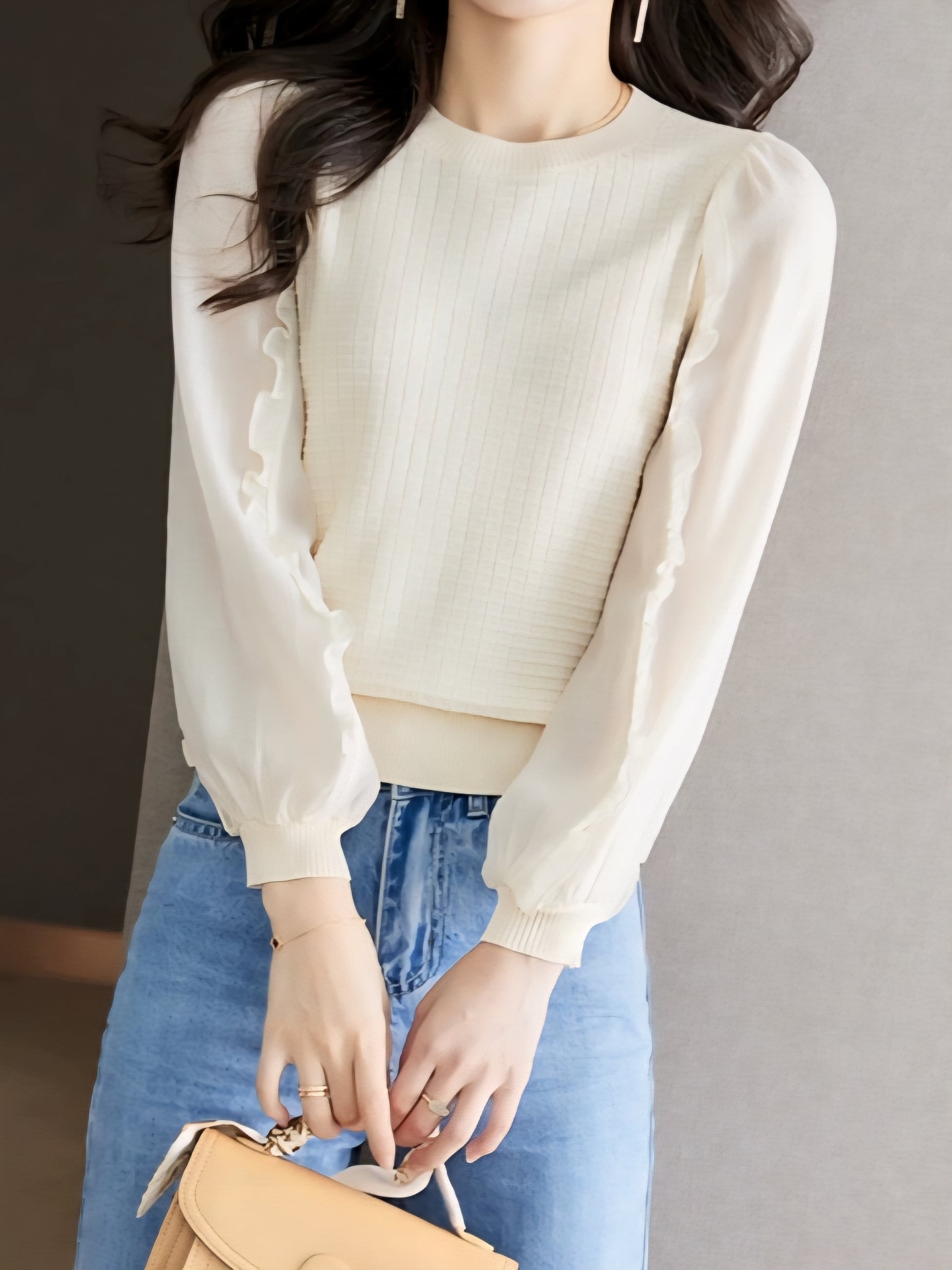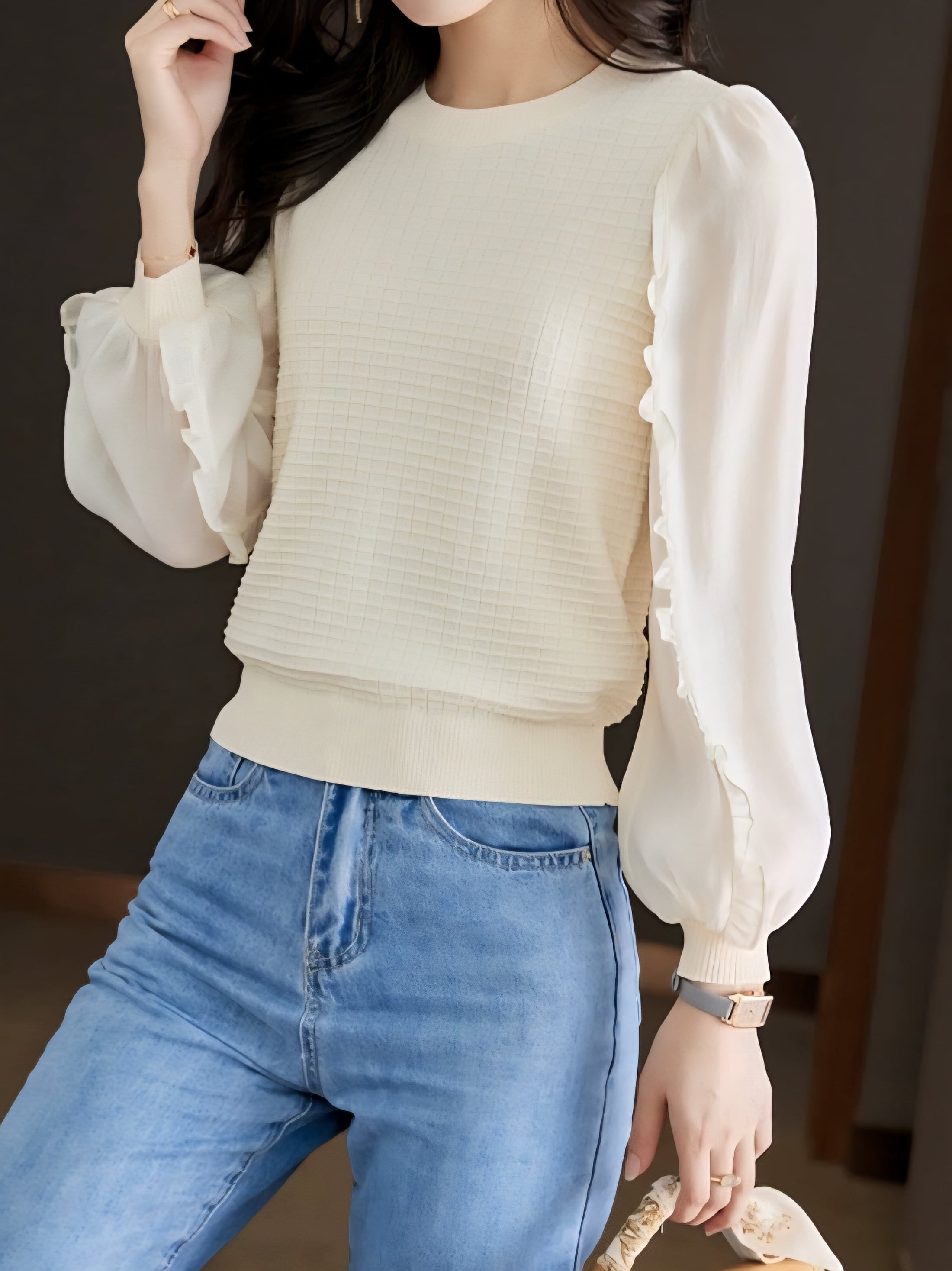 Puff sleeve balloon chiffon knit pullover L0768