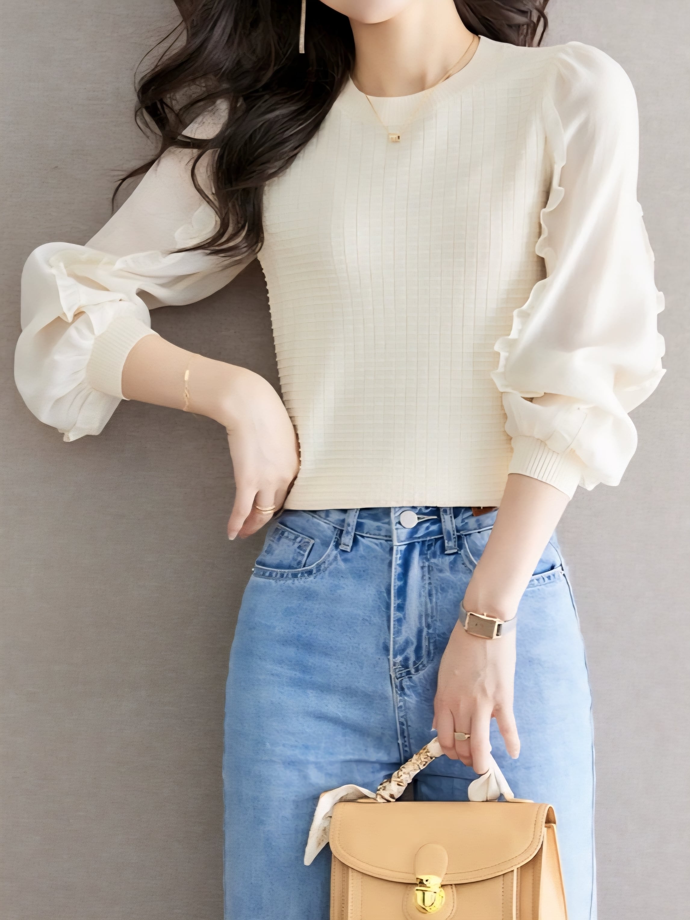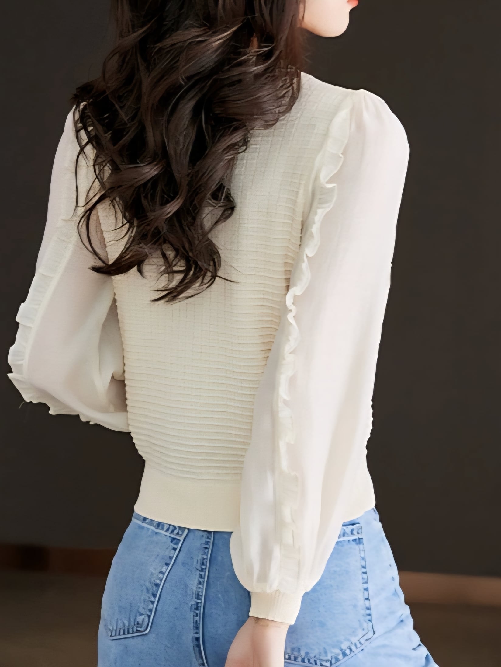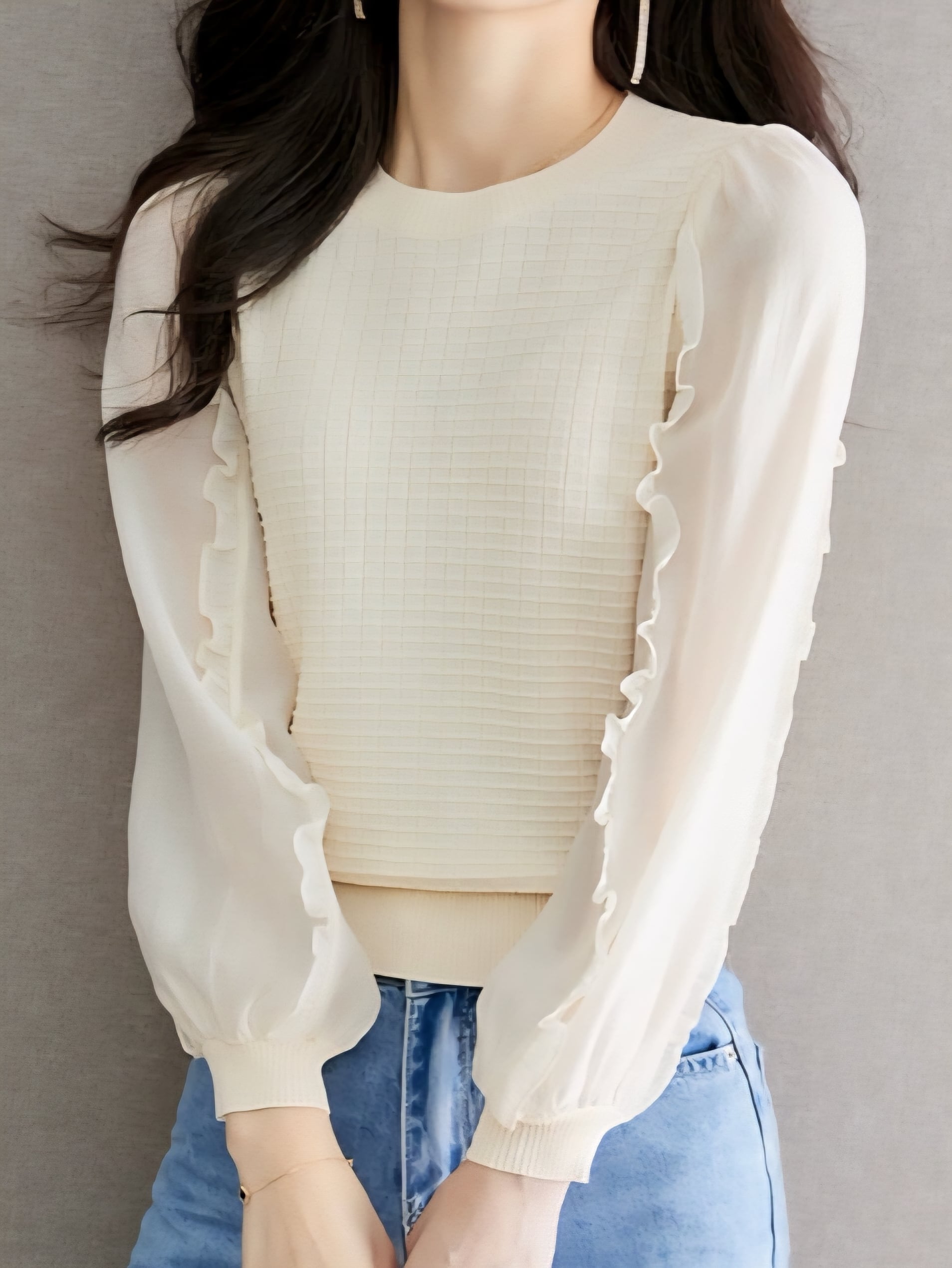 Puff sleeve balloon chiffon knit pullover L0768