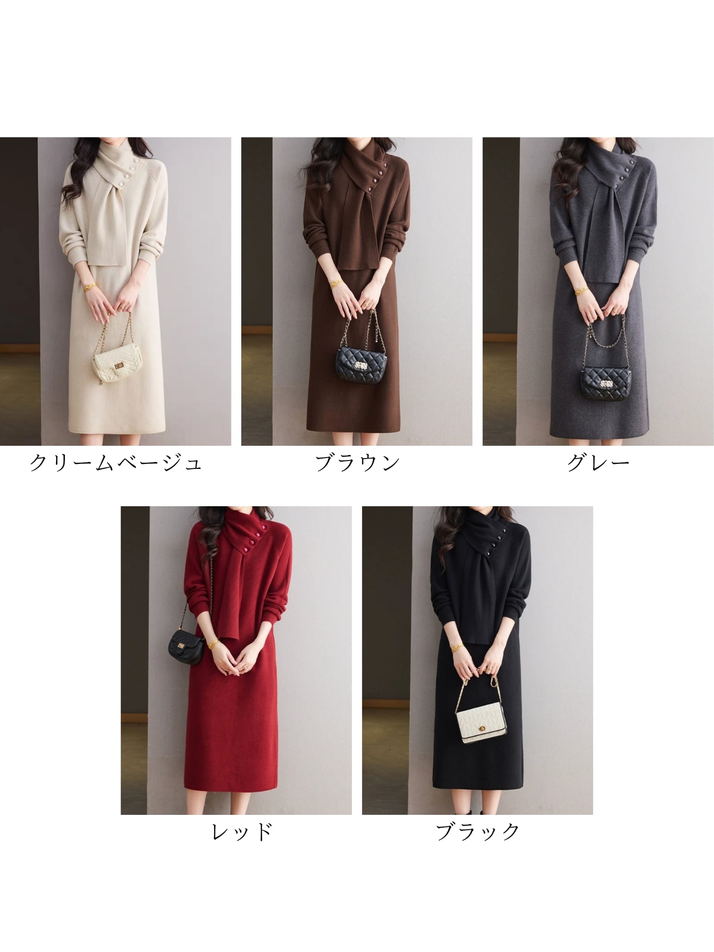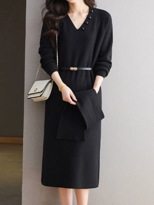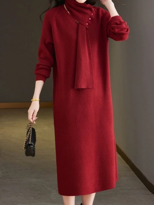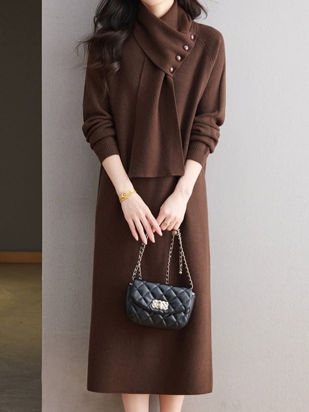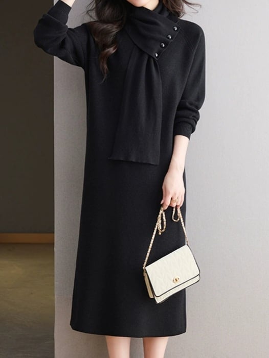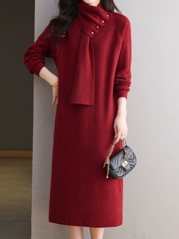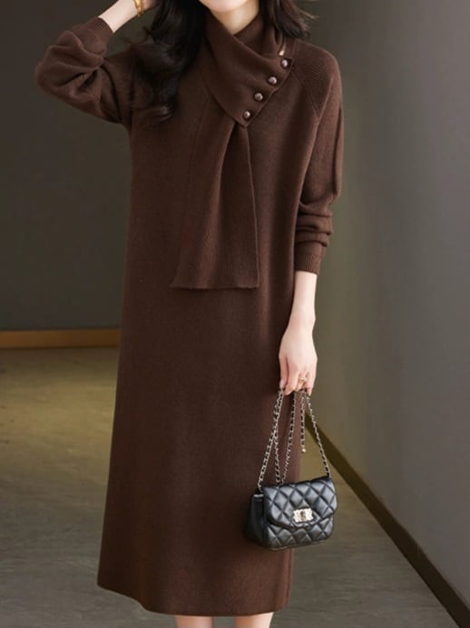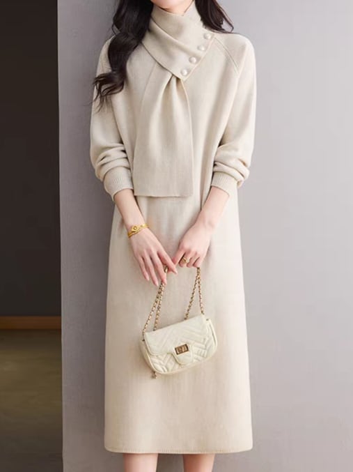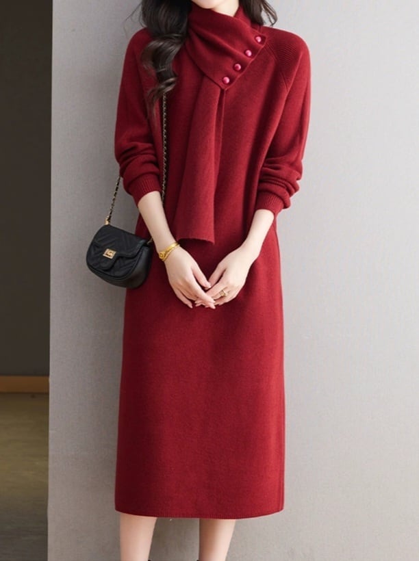 Detachable scarf V-neck knit onepiece L0781