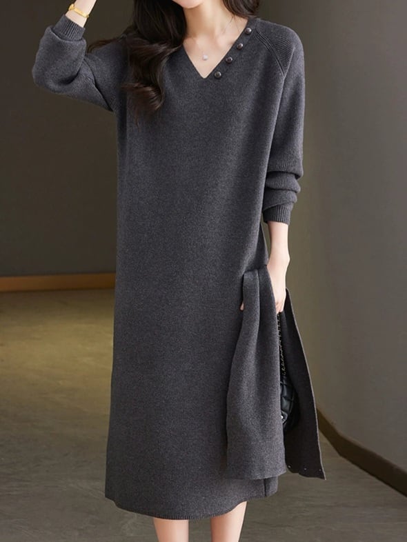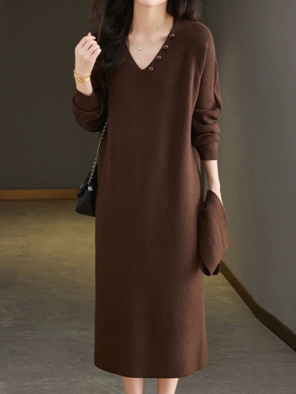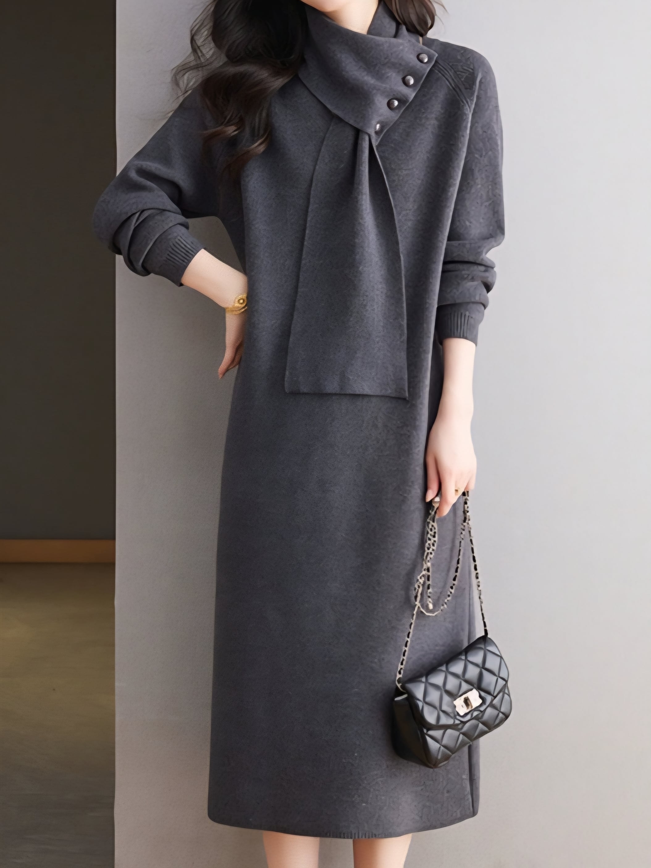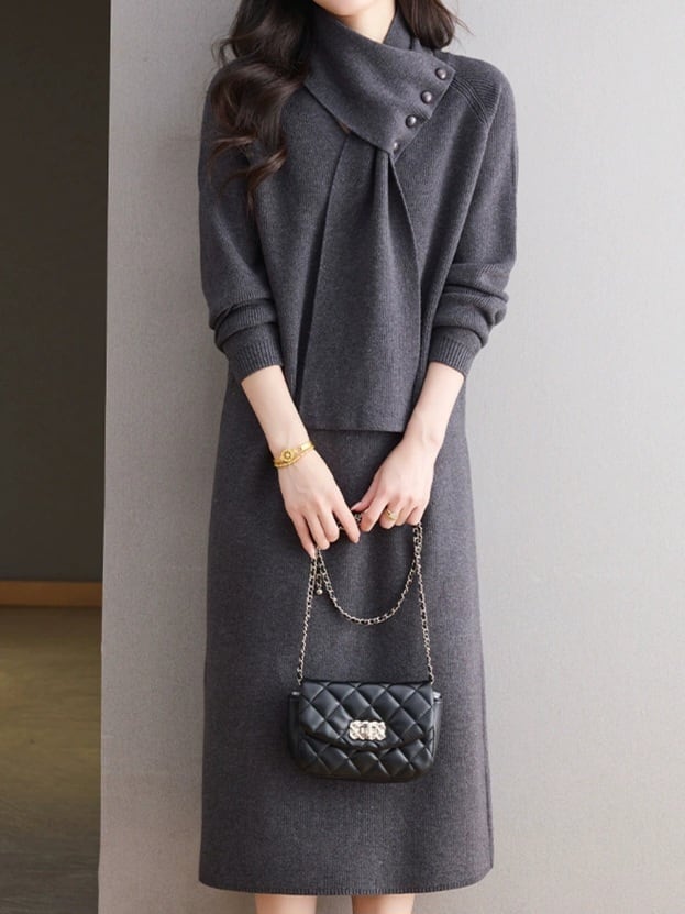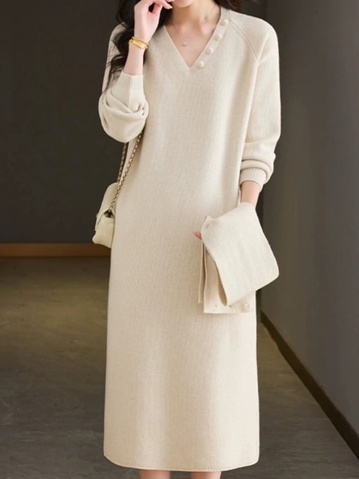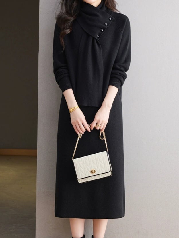 Detachable scarf V-neck knit onepiece L0781