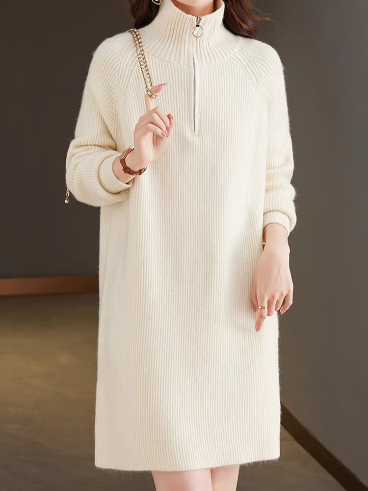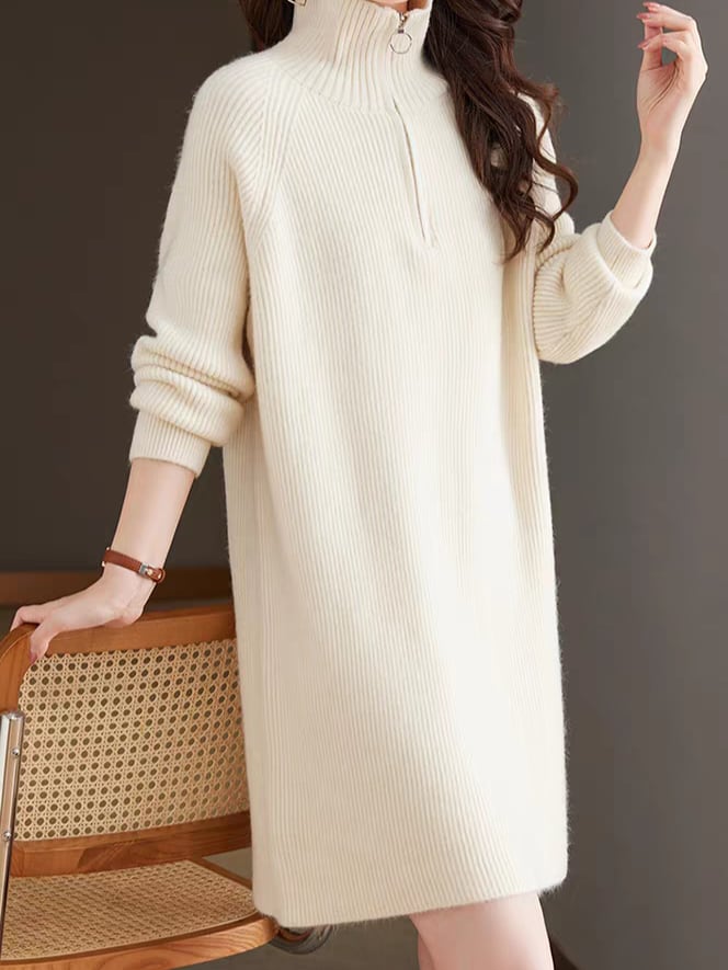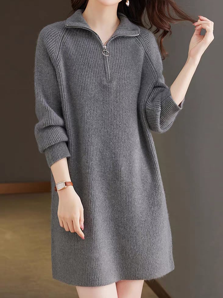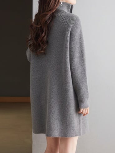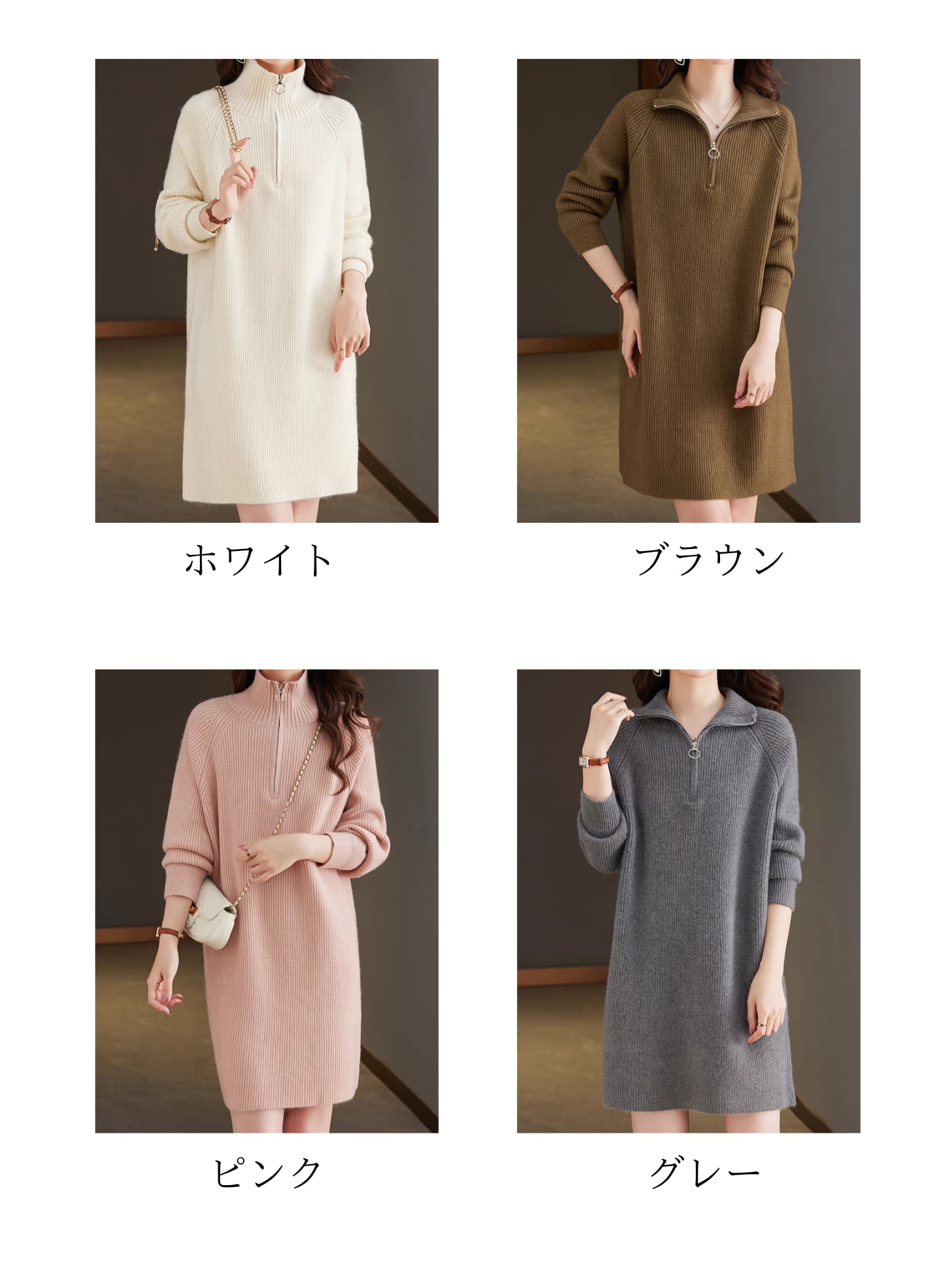 ハーフジップの抜け感とニットのやわらかさが合わさった、大人のためのミニワンピース。
