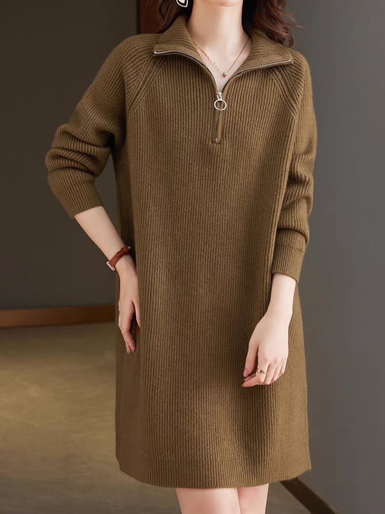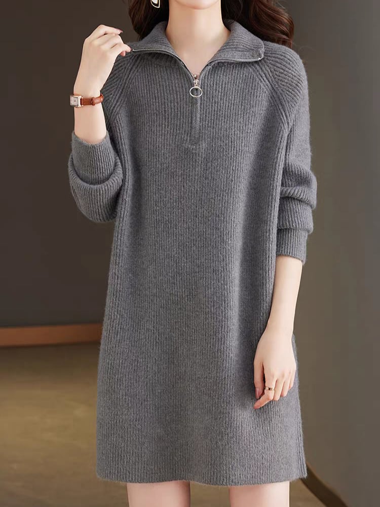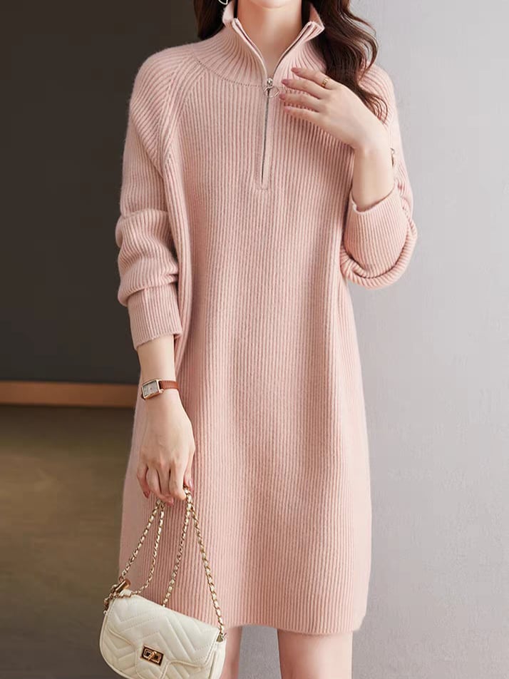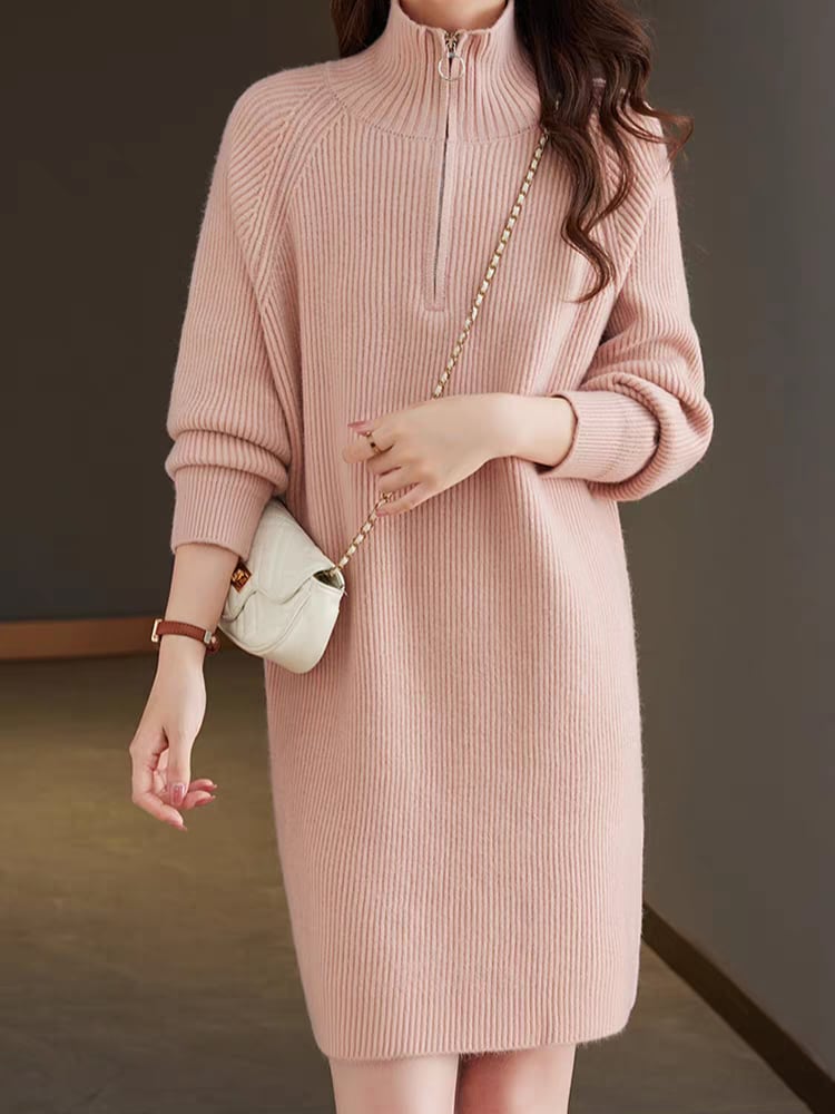 ハーフジップの抜け感とニットのやわらかさが合わさった、大人のためのミニワンピース。