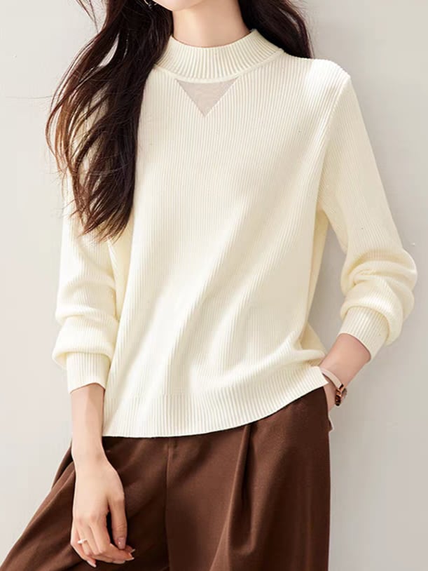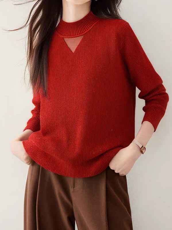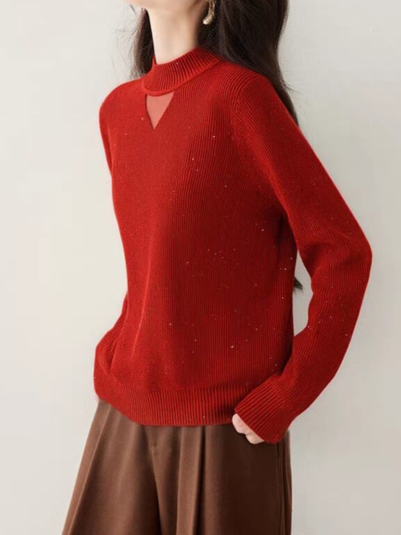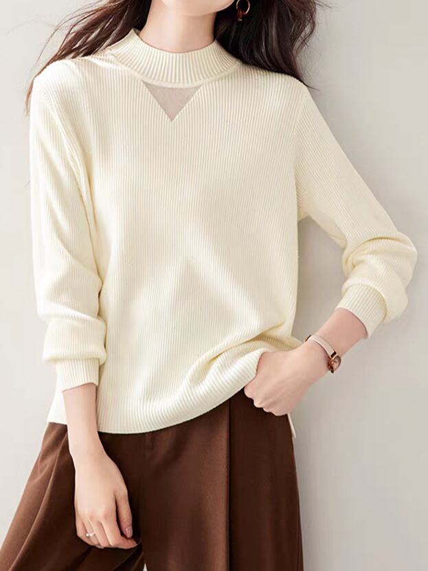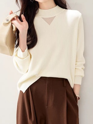Sheer chest design high neck knit pullover L0808