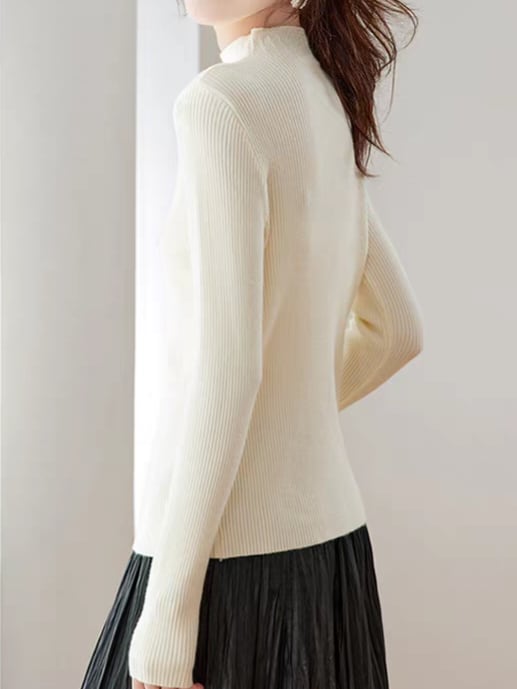 ✔ 身体にやさしく沿うリブニットで、きれい見えと着心地を両立