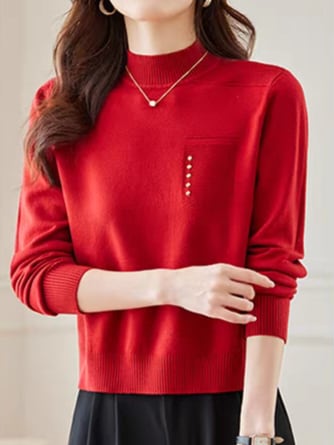 Half-high neck long-sleeved knit pullover L0822