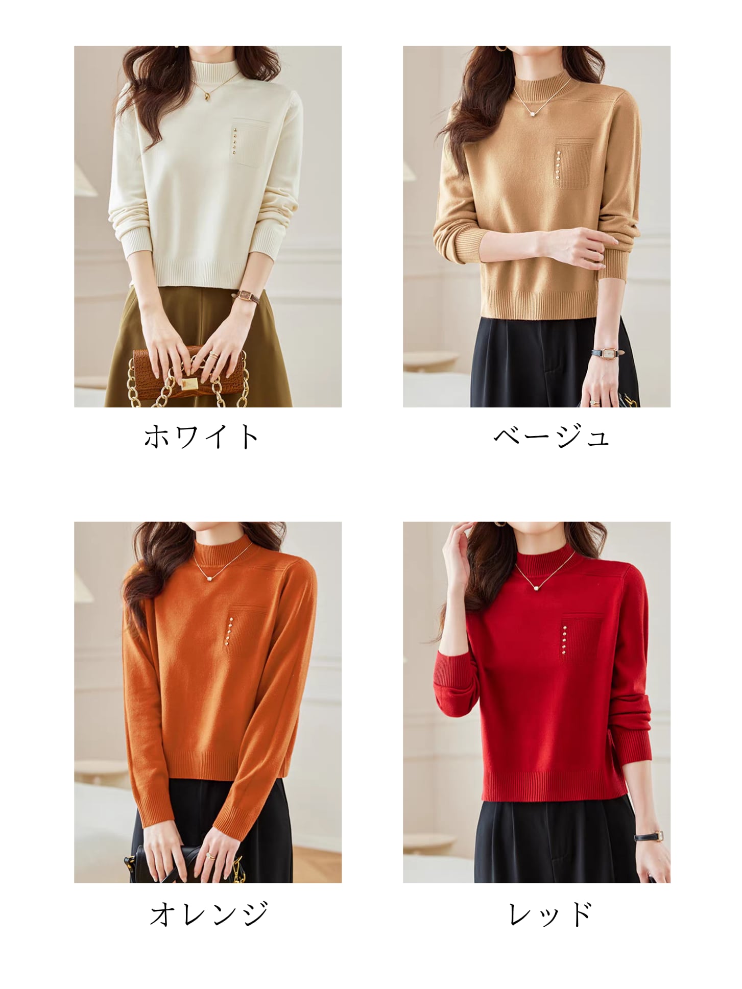 ✔ 首元を締めつけすぎないハーフハイネックで、上品&快適
