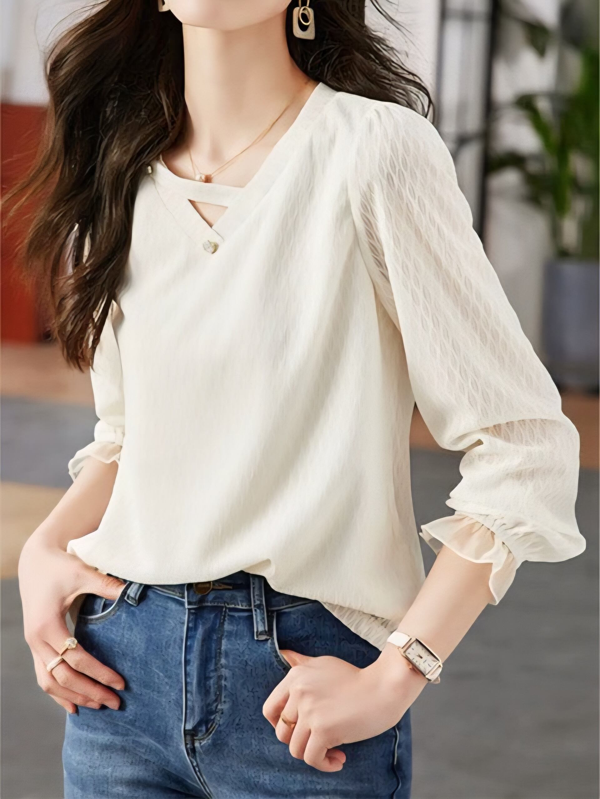 Cut-out V-neck ruffle sleeve top L0572